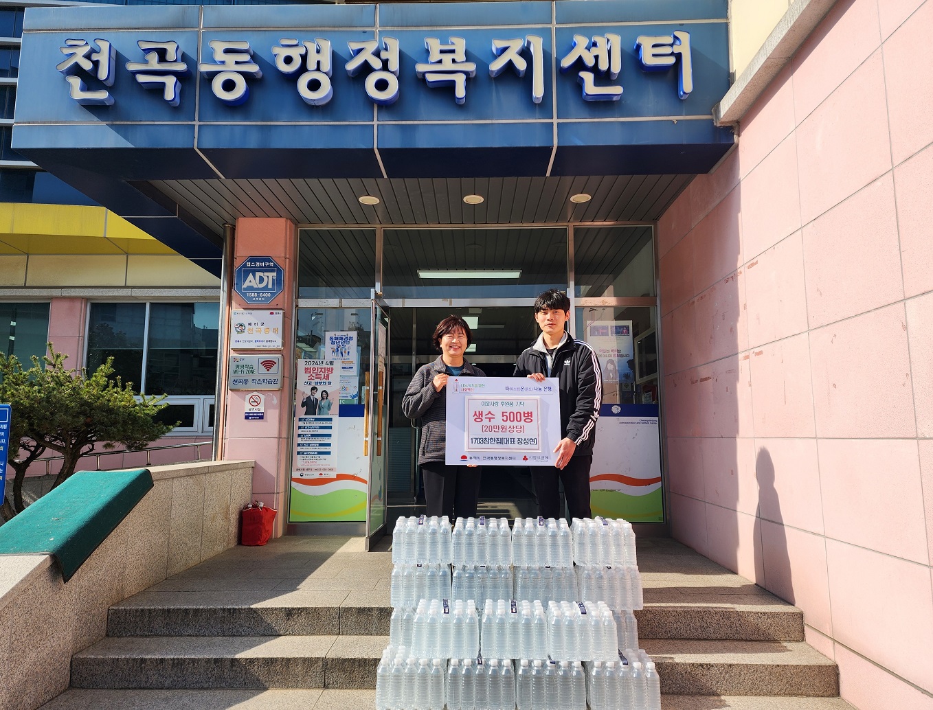 1703 참한집(대표 장성현)은 최근 어려운 이웃을 위해 써달라며, 동해시 천곡동에 생수 500병을 기탁했다. 지난 4월 1일 전달된 후원물품은 ‘1703 참한집’이 개업 시 축하 화환 대신 받은 생수(500병)로, 관내 취약계층에게 전달될 예정이다.