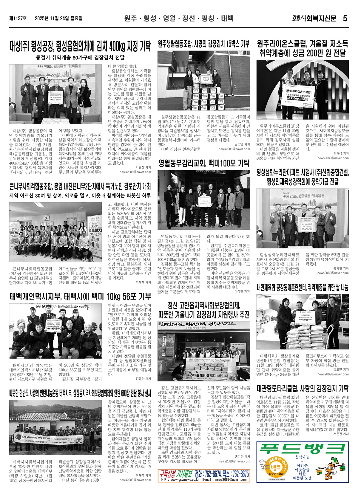 매주 목요일 오후 3시∼5시, 시청 9층 상담실 원주시는 시민들의 세금 고충을 해결하고자 마을세무사 8명과 함께 ‘국세·지방세 무료세무상담의 날’을 운영하고 있다. 지난해 9월부터 6개월간 총 90명의 시민이 찾아와 120건의 세금 고민을 해결하며 큰 호응을 얻고 있다. 무료세무상담은 원주시 마을세무사들의 자발적 재...