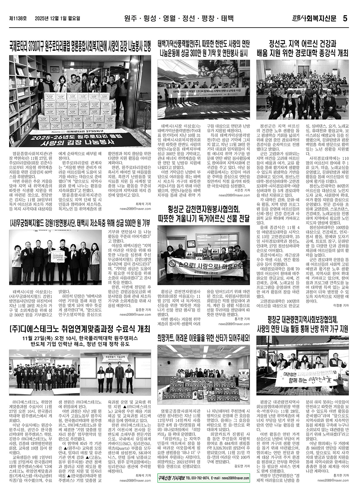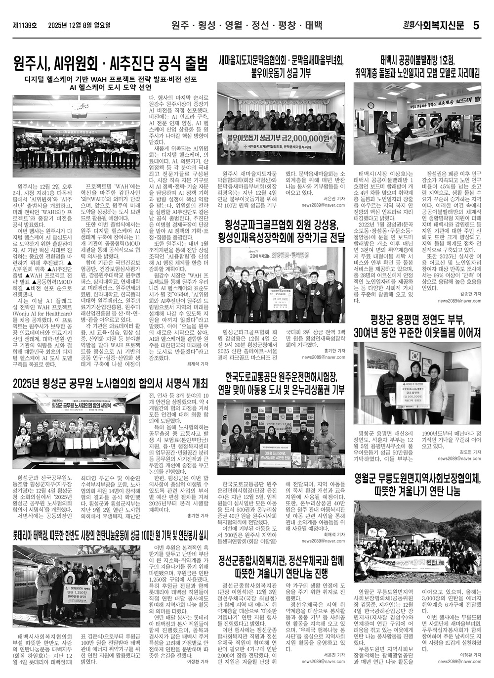 밥상공동체종합사회복지관(관장 하태화)은 3월 19일 민관학 협력 ‘스마트복지협의체’ 회의를 진행하며, 원주형 스마트통합돌봄 모델 구축에 대한 논의를 했다고 밝혔다. 한편 복지관은 9월 스마트복지협의체를 주축으로 ‘스마트복지와 사회적처방 연결’ 주제로 포럼을 진행한다. 이날 회의에는 원주시청 복지정책과 박찬...