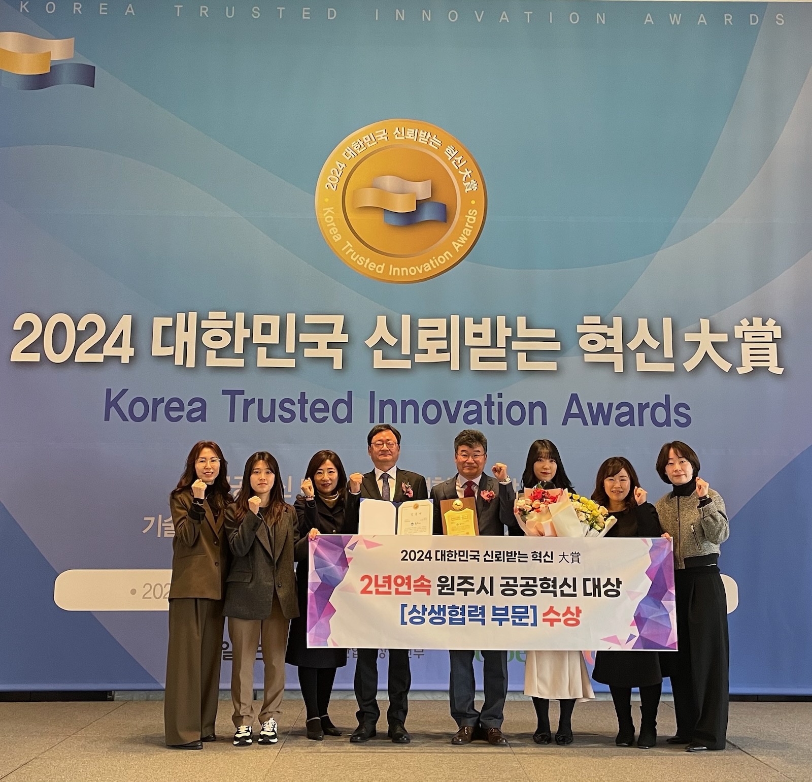원주시는 ‘2024년 대한민국 신뢰받는 혁신대상 시상식’에서 공공혁신·상생협력 분야에서 2년 연속 ‘대상’을 수상하는 쾌거를 이뤘다. 올해로 9번째를 맞이한 대한민국 공공혁신대상은 중앙일보와 포브스코리아가 주최하고 산업통상자원부, JTBC가 후원하며, 각 분야에서 도전과 창의적인 혁신으로 국가 경쟁력 향상에 기...