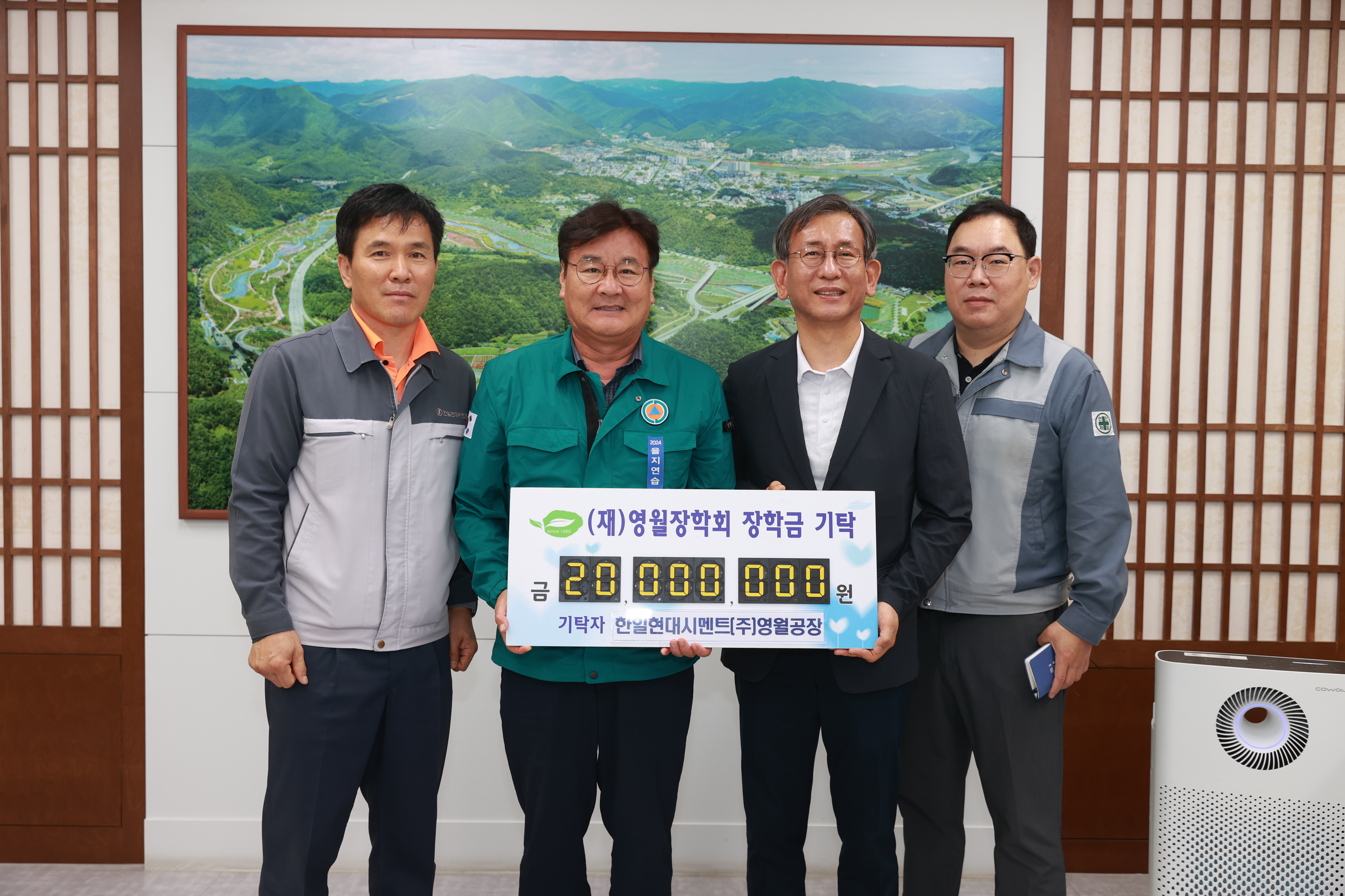 한일현대시멘트(주)영월공장(공장장 박진규)은 지난 8월 21일 영월지역 인재육성을 위해 써달라며 2,000만 원의 장학금을 재단법인 영월장학회(이사장 최명서)에 기탁하였다.