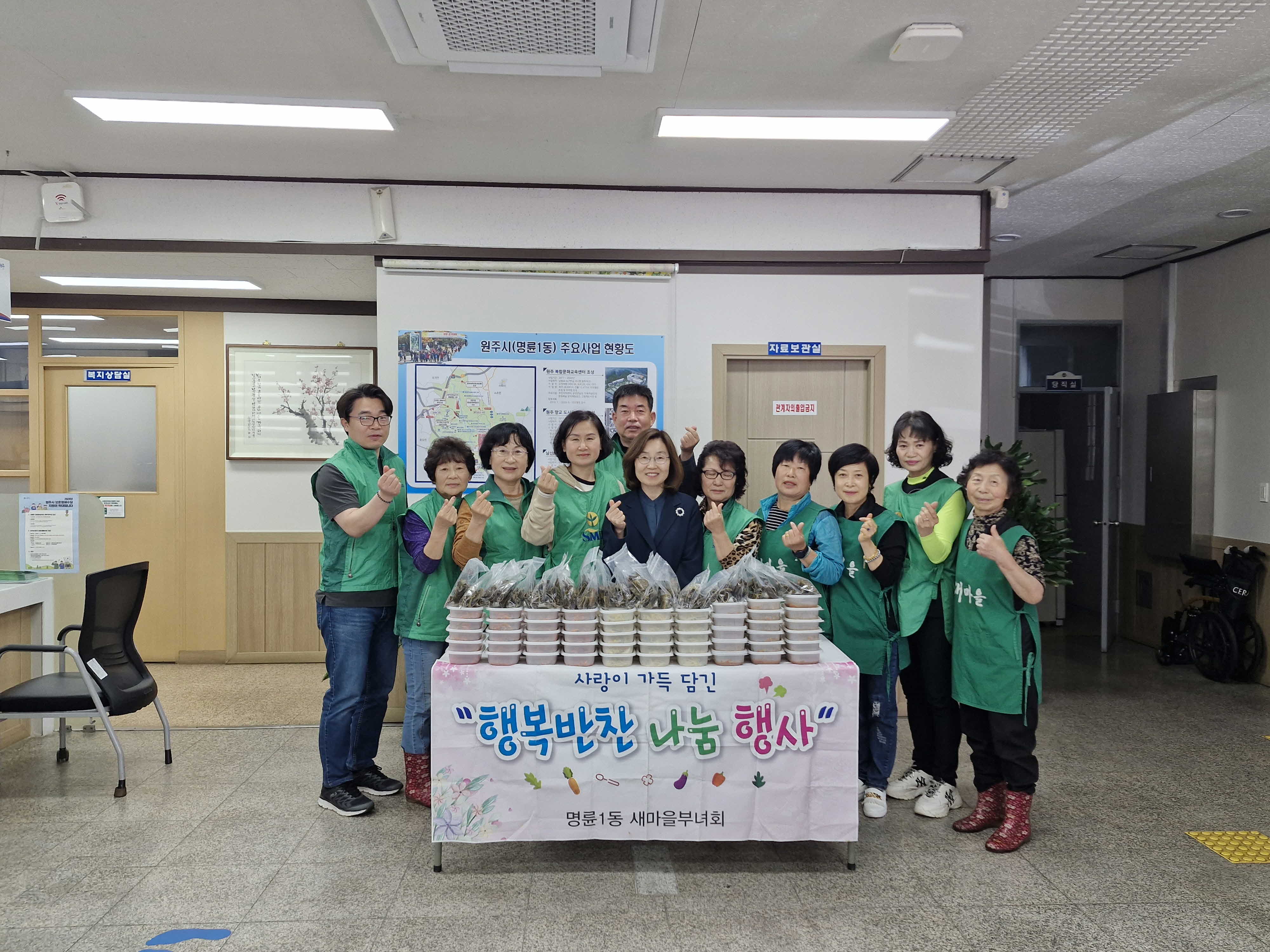 원주시 명륜1동 새마을단체(지도자협의회, 부녀회, 문고회)는 지난 4월 18일 새마을활력화사업을 재개했다. 새마을부녀회는 정성껏 만든 반찬 세트를 취약계층 30가구에 전달하는 나눔 봉사를 실시했다. 지난달 반찬 맛에 대한 호평을 받은 부녀회는 반찬 가지 수를 3종에서 4종으로 늘려 어르신들의 입맛을 돋우었다. 반찬봉...