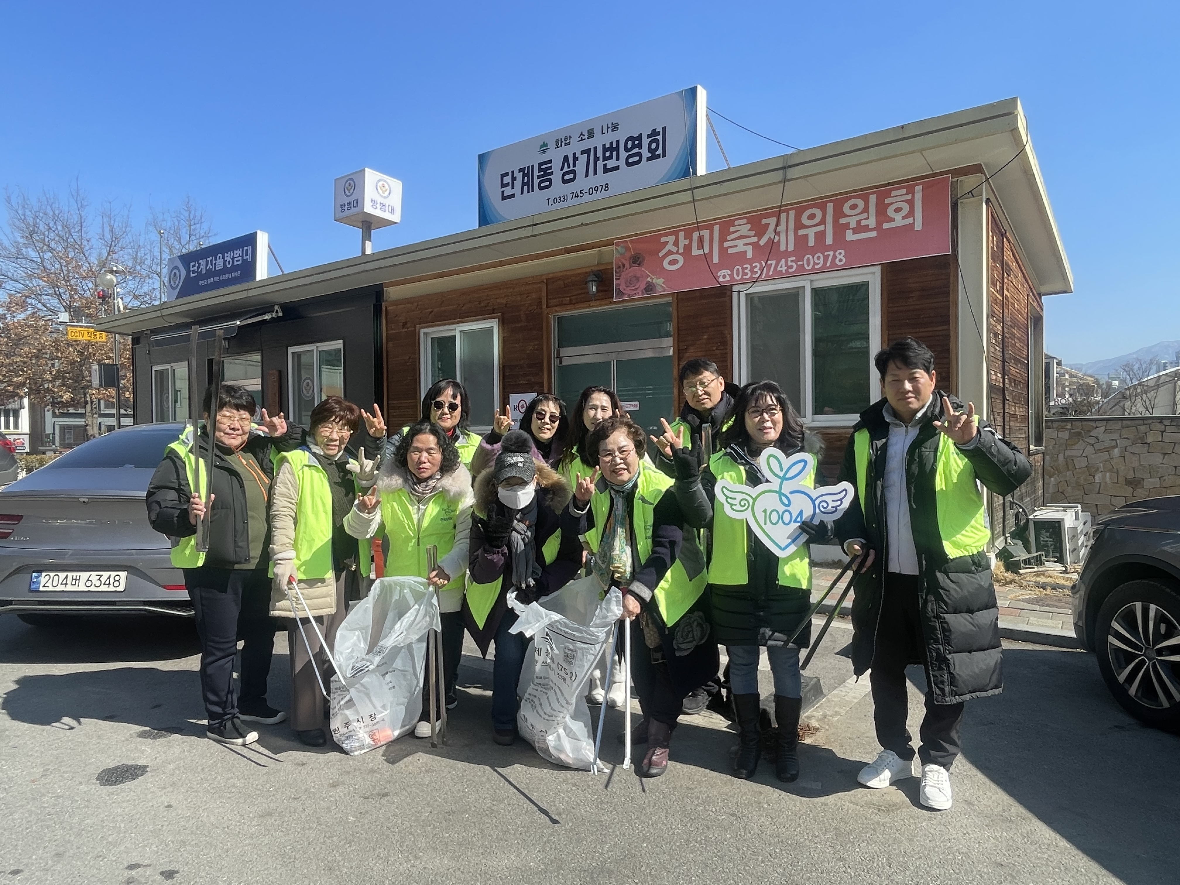 원주시 단계동 천사지킴이(회장 이영임)는 지난 2월 22일 월례회의를 개최하고, 이어 장미공원 일대에서 환경정화 봉사활동을 진행했다. 이번 봉사활동에는 회원 15명이 참여해 공원 내 쓰레기를 수거하고 깨끗한 환경 조성을 위해 힘을 모았다. 단계동 천사지킴이는 정기적인 봉사활동을 통해 지역 사회의 환경 보호에 앞장...