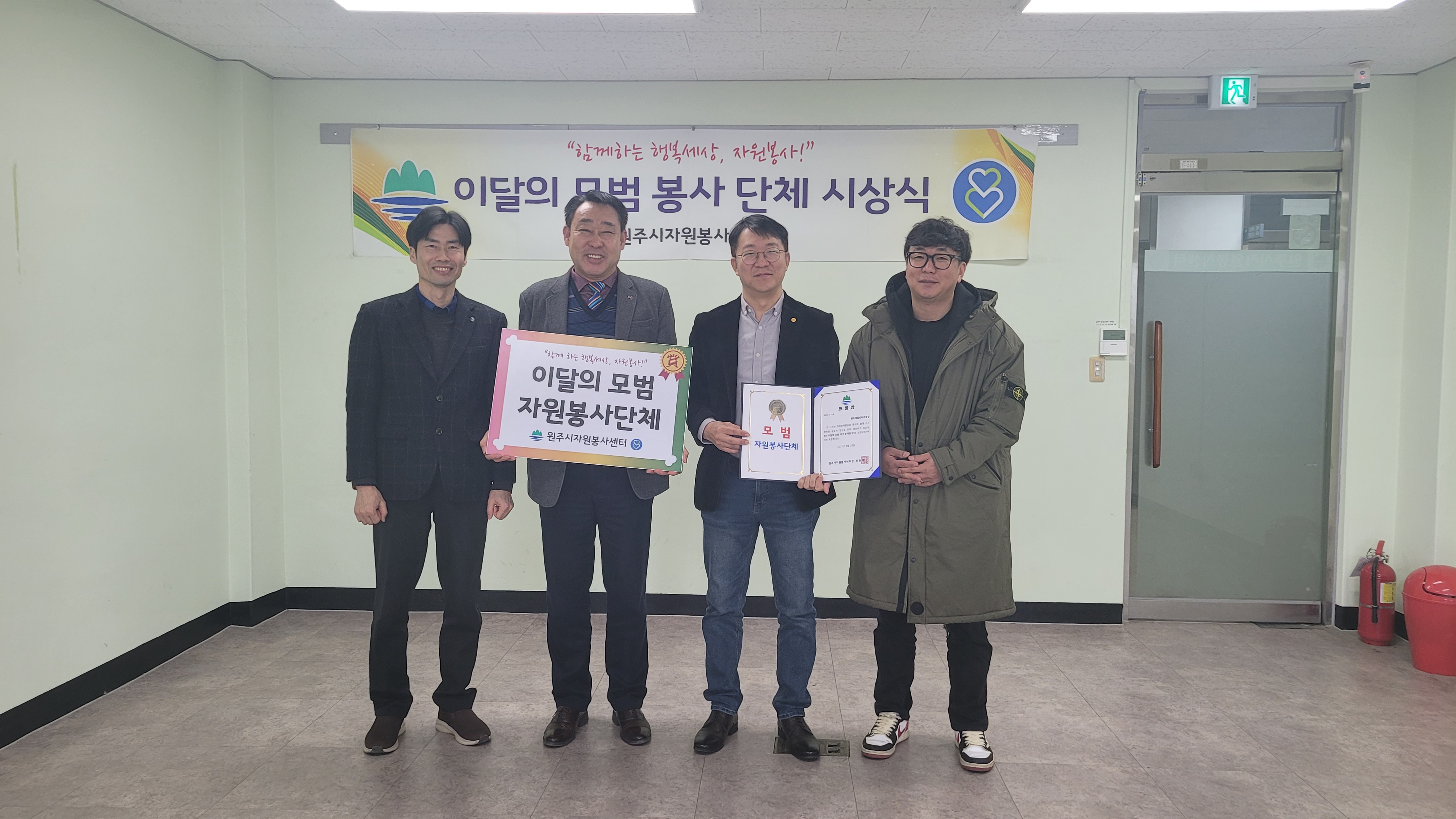 원주시자원봉사센터(센터장 최원지)는 2월 28일, 센터에서 이달이 모범 자원봉사단체로 원주제일로타리클럽(회장 심종한)을 선정하고 시상했다.