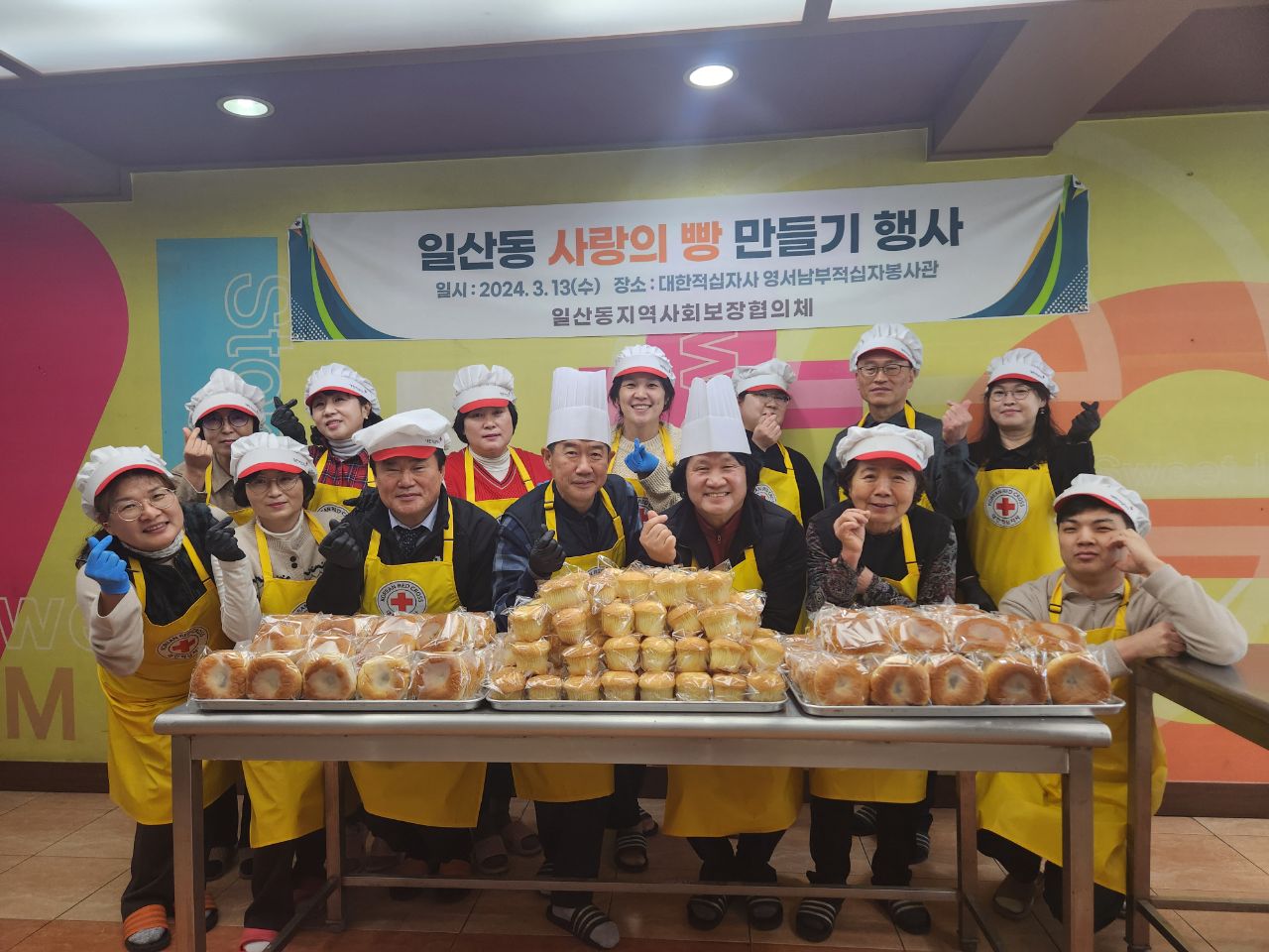원주시 일산동 지역사회보장협의체(위원장 황명흠)는 지난 3월 13일 대한적십자사 영서남부봉사단과 취약계층을 위한 사랑의 빵 만들기 나눔 행사를 진행하였다. 이번 일산동지역사회보장협의체 15명은 대한적십자사 영서남부봉사관을 방문해 단팥빵과 치즈머핀을 직접 만들고, 지역아동센터 아동들과 독거 어르신 등 관내 취...