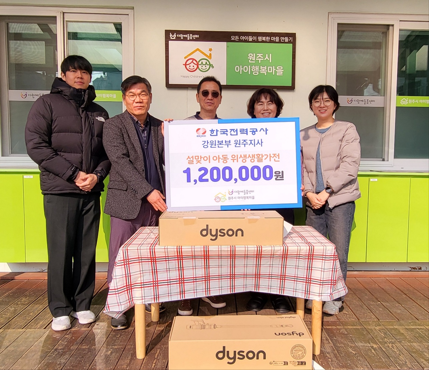 한국전력공사 강원본부 원주지사(지사장 허봉일, 위원장 안종인)는 1월 22일 설명절을 맞이하여 원주시 다함께돌봄센터 아이행복마을(센터장 윤정진) 아이들의 쾌적하고 위생적인 환경개선을 위해 120만원 상당의 청소기 3대를 지원하였다.