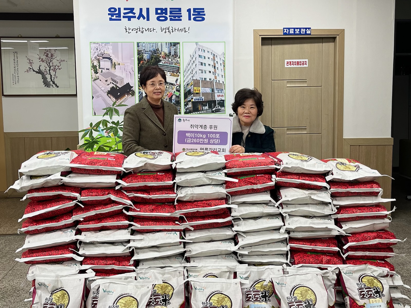 원주시 명륜감리교회(담임목사 우민수)는 지난 1월 16일 명륜1동 취약계층을 위해 백미(10kg) 100포를 후원했다. 기탁된 백미는 교인들이 십시일반 정성을 담아 마련했으며, 관내 독거 어르신과 저소득 가구 등에 전달될 예정이다.