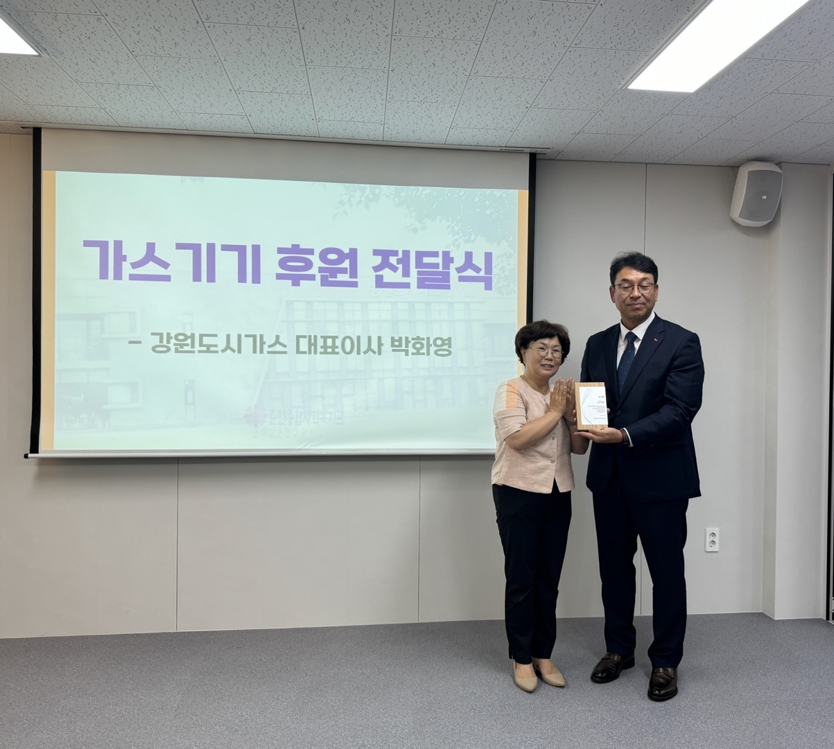 춘천종합사회복지관(관장 오미경)은 8월 23일 가스기기 전달식을 진행하였다. 이번 전달식은 강원도시가스(대표이사 박화영)의 지원으로 이루어졌으며, 복지관 행복식당에 식기세척기 1대, 취반기 1대, 대형 렌지 1대, 낮은 렌지 1대 등 총 4대의 가스기기를 전달하였다.