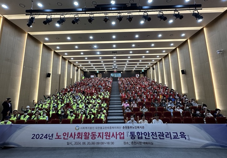 춘천동부노인복지관(관장 종세스님)은 지난 8월 20일(화) 춘천시청 대회의실에서 ‘2024년 노인일자리 및 사회활동지원사업 안전교육’을 성공적으로 마무리하였다. 이번 교육은 어르신들이 안전하고 건강한 사회활동을 지속할 수 있도록 지원하기 위해 마련되었으며 공중화장실관리, 석사천샛강지킴이, 아름다운동행, 공감1...