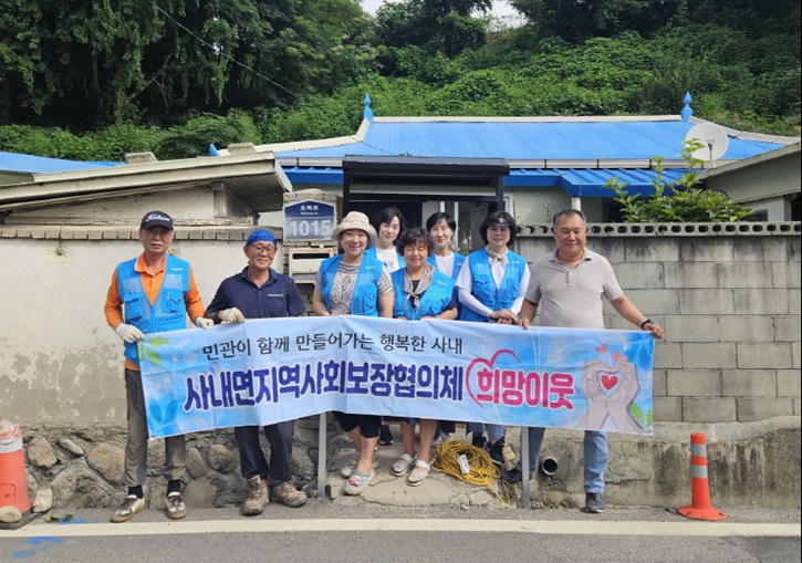 화천군 사내면 지역사회보장협의체(위원장:안경식) 회원들은 지난 8월 21일 사내면 독거노인 가구를 방문해 안전 난간 설치, 장마철 침수 대비 방수 공사, 주택 주변 환경정화와 제초작업 등의 봉사활동을 펼쳤다.