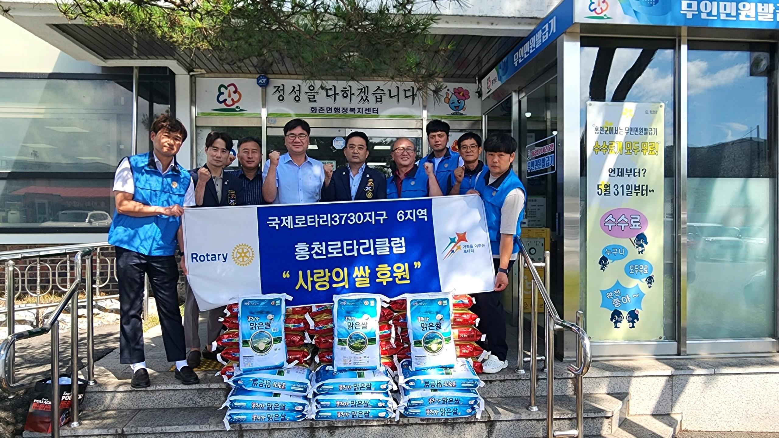 국제로타리 3730지구 홍천로타리클럽(회장 이병일)은 지난 7월 15일 화촌면 행정복지센터(면장 최창화)를 방문하여 불우이웃돕기 성품(쌀 20kg 15포)을 기탁했다. 이번 성품은 국제로타리 3730지구 홍천로타리클럽 회장 이·취임식에 축하 화분을 대신하여 쌀로 기증을 받아 기탁하게 되었으며, 기증품은 화촌면 지역 취약계...