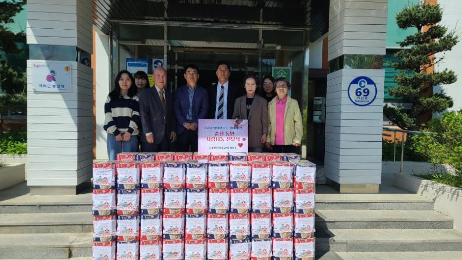 춘천은하수교회(목사 이호철)는 지난 5월 2일 가정의 달을 맞아 동면 어려운 주민을 위해 라면 100상자를 기부했다.