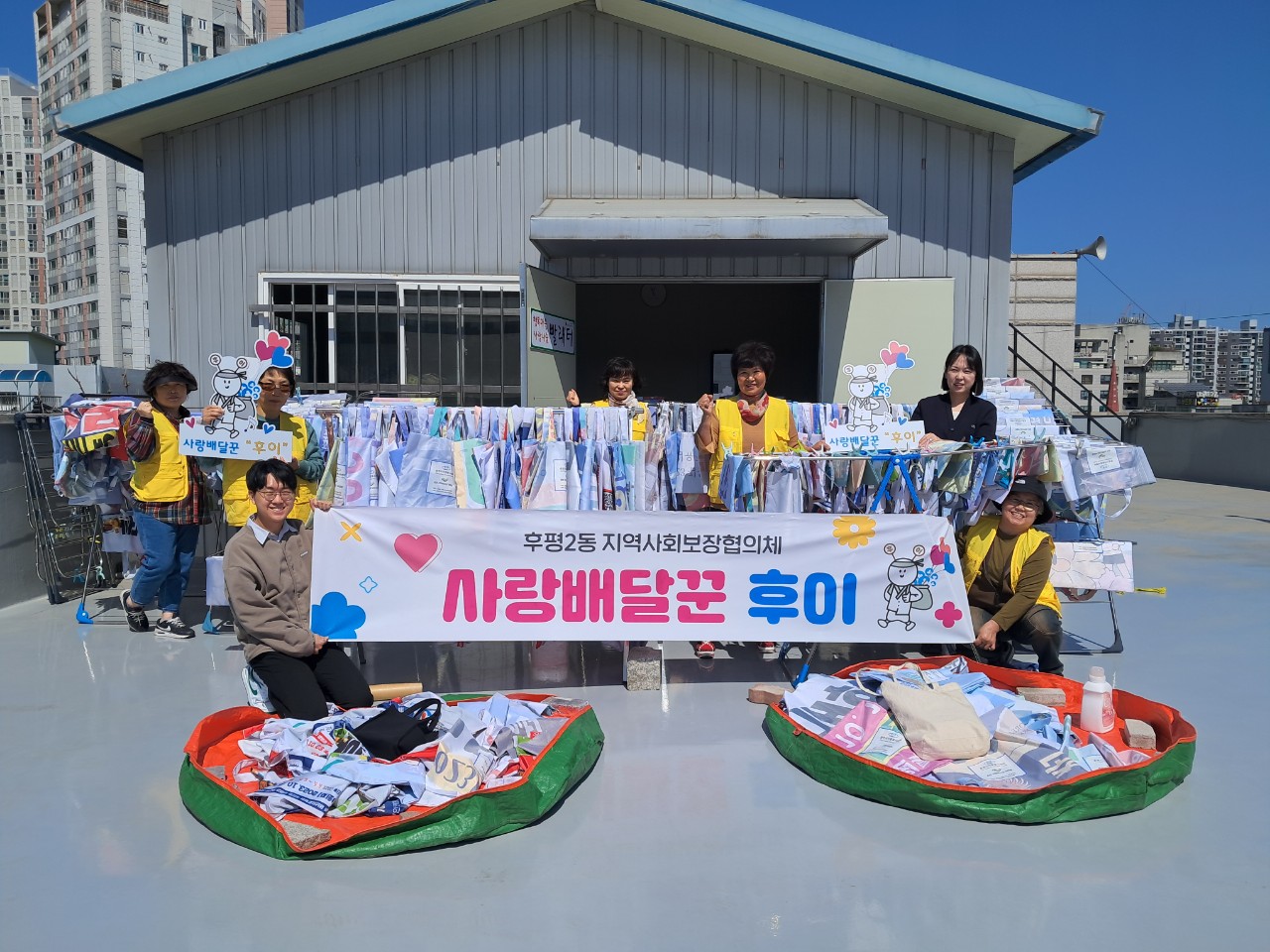 춘천시 후평2동지역사회보장협의체(위원장 박정임)는 지난 4월 9일 환경을 위한 폐현수막 재활용 장바구니 1,200장을 세탁해 춘천지역먹거리통합지원센터에 전달했다.