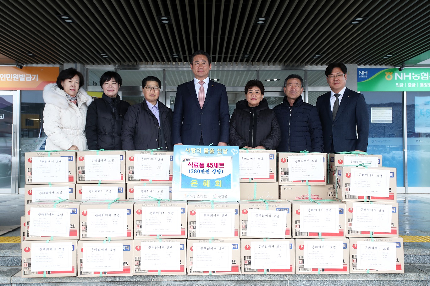 봉사단체 은혜회(회장 신경숙)는 지난 2월 22일 홍천군청을 방문, 관내 가정위탁아동 등 저소득계층 45가구에 380만원 상당의 식료품을 전달했다. 은혜회는 매월 1만원씩 회비를 모아 어려운 이웃을 돕는 봉사단체로 30년 넘게 가정위탁 등 저소득 가정의 아동들을 후원하며, 이웃사랑을 실천하고 있다. 신경숙 회장은 “202...