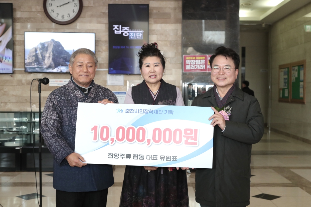 유원표 춘천시민장학재단 이사는 1월 11일 KBS춘천방송국 1층 홀에서 개최된 유원표 사진전 행사장에서 장학금 1,000만 원을 춘천시민장학재단에 기탁해 장학금 기탁 활성화에 힘을 보탰다.