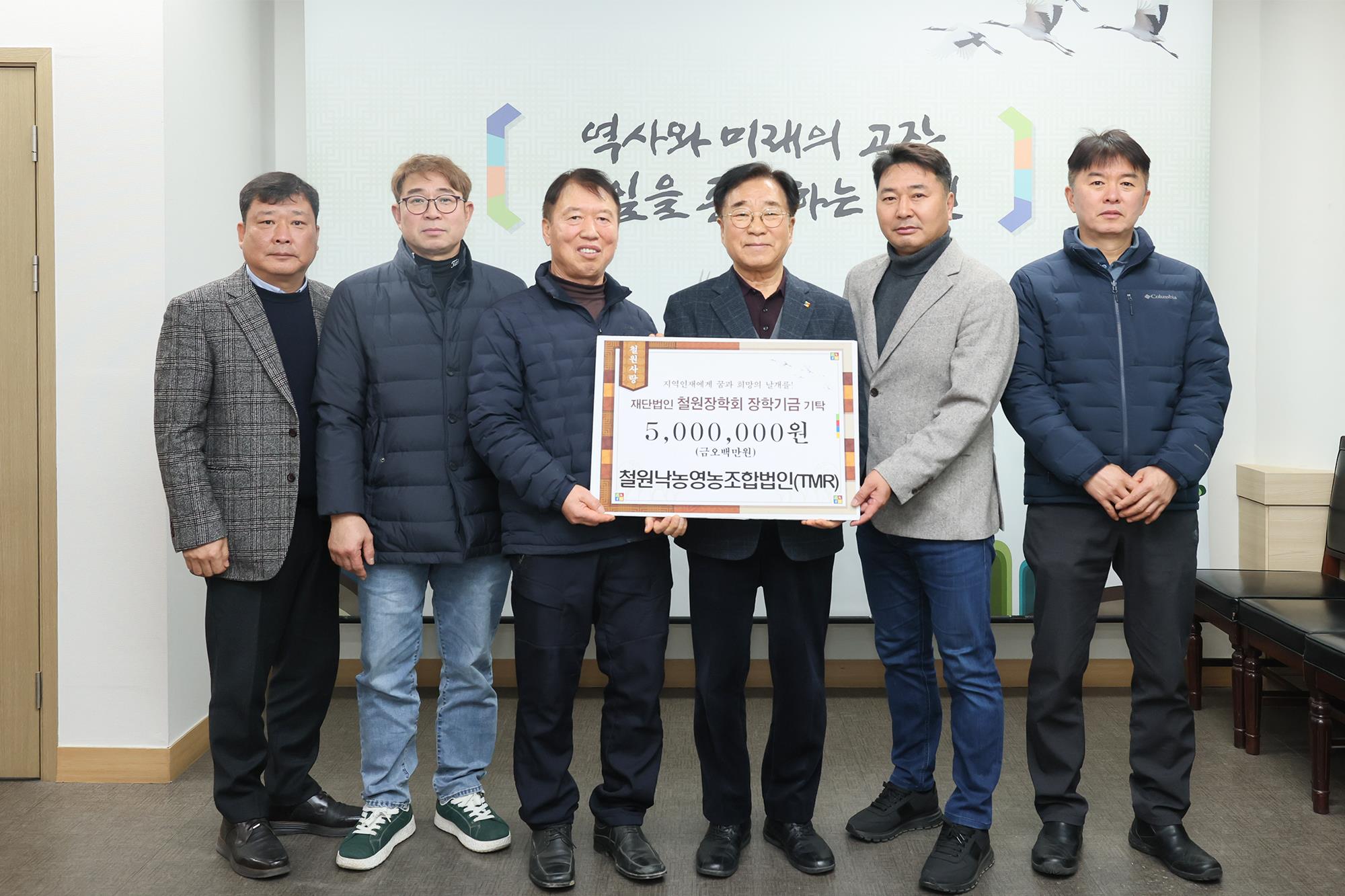 철원군은 지난 1월 16일 철원낙농영농조합법인(TMR)이 인재육성에 사용해 달라며 장학금 500만원을 기부했다.