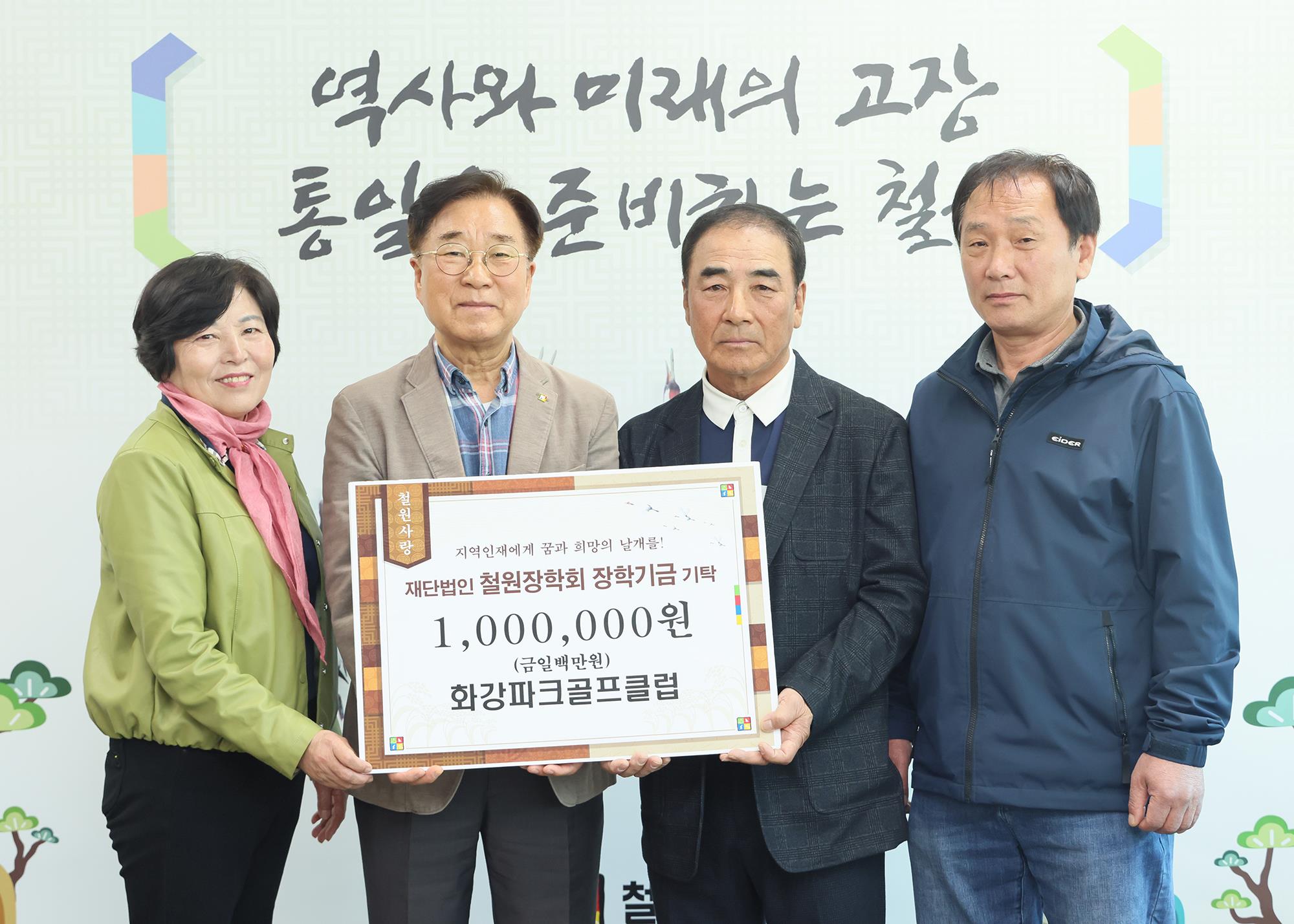 화강파크골프클럽(회장 이수호)은 지난 4월 9일 오전 10시 철원군청을 방문해 철원장학회 장학기금으로 100만원을 기탁했다.