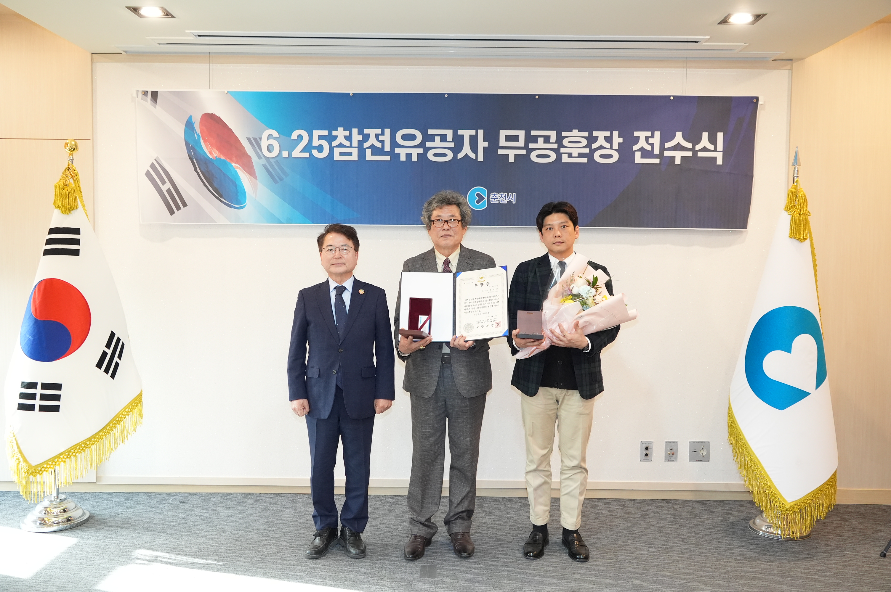 육동한 춘천시장 18일 6.25전쟁 참전 유공자 고(故) 정일모 일병 유족 화랑무공훈장 전수 정 일병 1950년 입대 후 6.25전쟁 중 철원 지구 전투 수공 인정 “목숨 바친 영웅들에 대한 정신을 계승하고 예우에 최선을 다하겠습니다” 육동한 춘천시장이 지난 3월 18일 오후 4시 30분 6.25전쟁 참전유공자인 고(故)정일모 일병의...