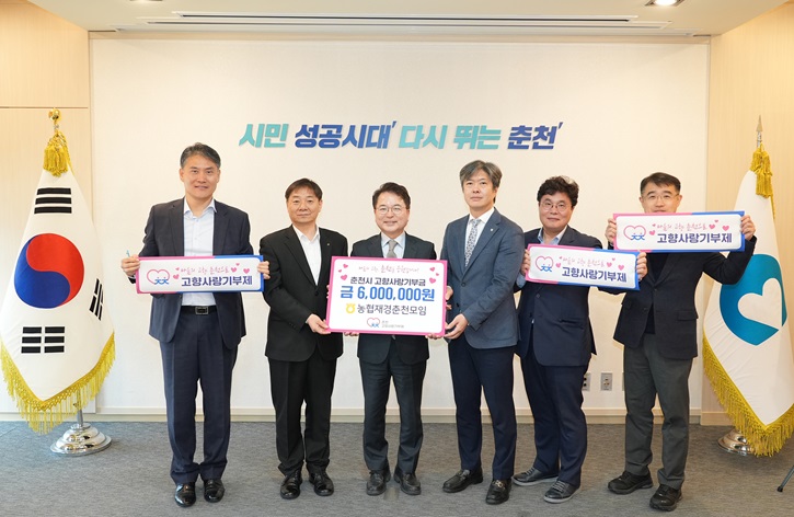 농협재경춘천모임 회원 30명 지난 3월 15일 고향사랑기부금 600만 원 기부 지난해에 이은 두 번째 기부, 지역 사랑 실천 농협재경춘천모임 회원들이 지난해에 이어 올해 고향사랑기부금을 춘천에 기부하면서 고향사랑을 실천했다. 춘천시에 따르면 지난 3월 15일 오전 10시 30분 농협재경춘천모임(대표: 박도성 농협은행 IT금...