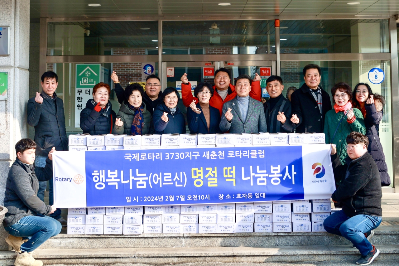 새춘천로타리클럽(회장: 이대현)은 지난 2월 7일 춘천시 효자2동 관내 저소득층에게 전달해달라며 떡국떡 200상자를 효자2동 행정복지센터에 기탁했다.