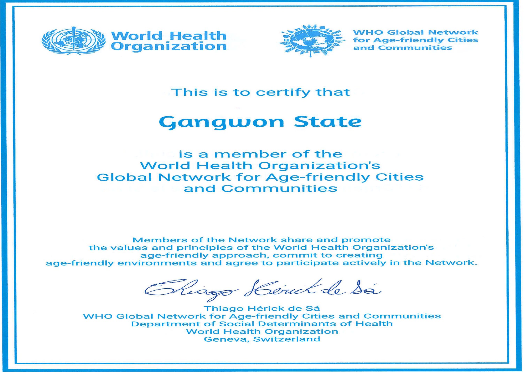 WHO 고령친화도시 인증획득… 시군이 있는 광역도 단위 최초, 노인복지에 연간 1조원 투입 강원특별자치도(도지사 김진태)가 노인이 건강하고 활력있는 사회생활을 영위할 수 있도록 관련 인프라를 조성해 온 노력을 인정받아, 지난 3월 17일 시군이 있는 광역도 단위 최초로 세계보건기구(WHO)로부터 ‘고령친화도시 국제네...