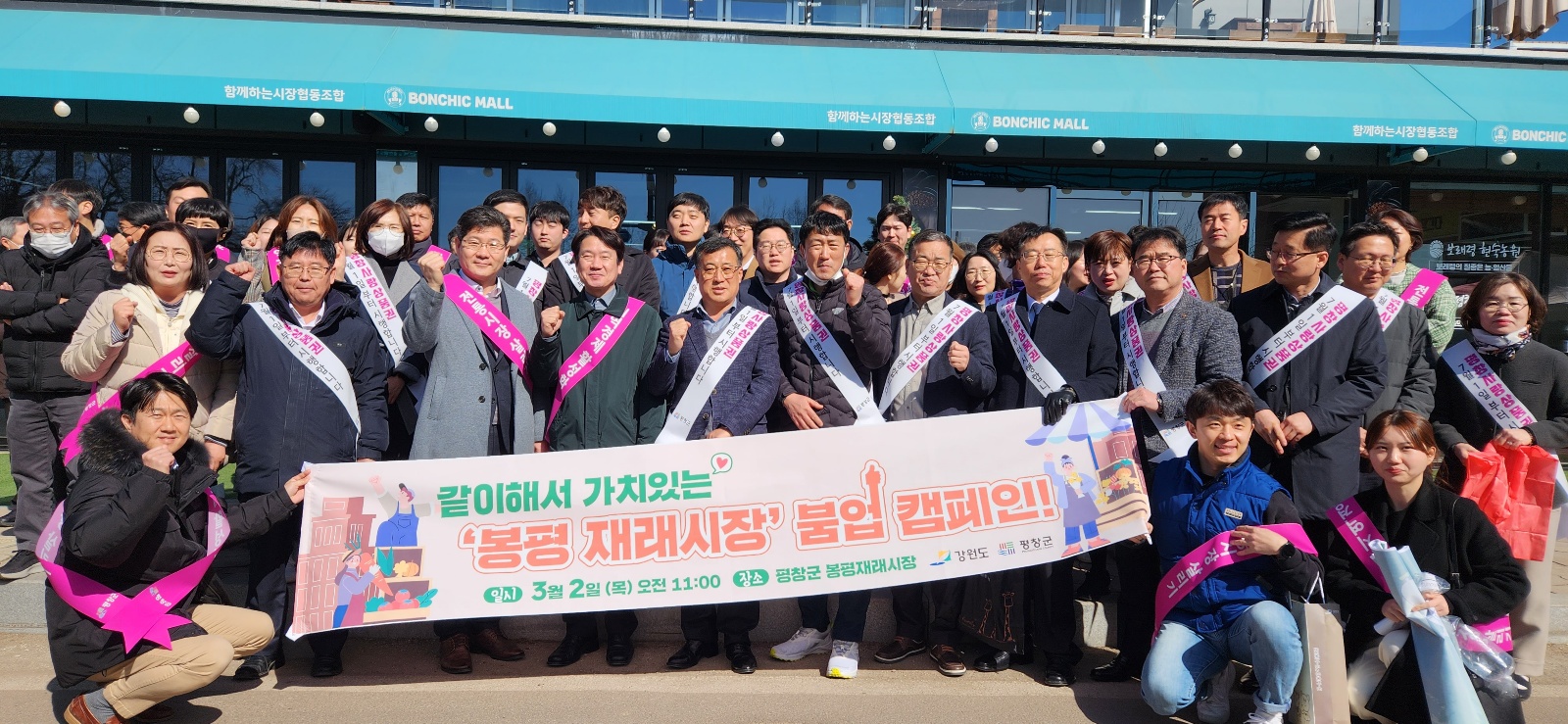 [강원사회복지신문 김종한 기자]=평창군은 지난 3월 2일 봉평전통시장에서 강원도청 및 평창군청 직원 등 약 100명이 참석한 가운데 경제침체와 소비심리 위축에 따른 골목상권 살리기를 위한 '전통시장 장보기 행사'를 실시하였다.