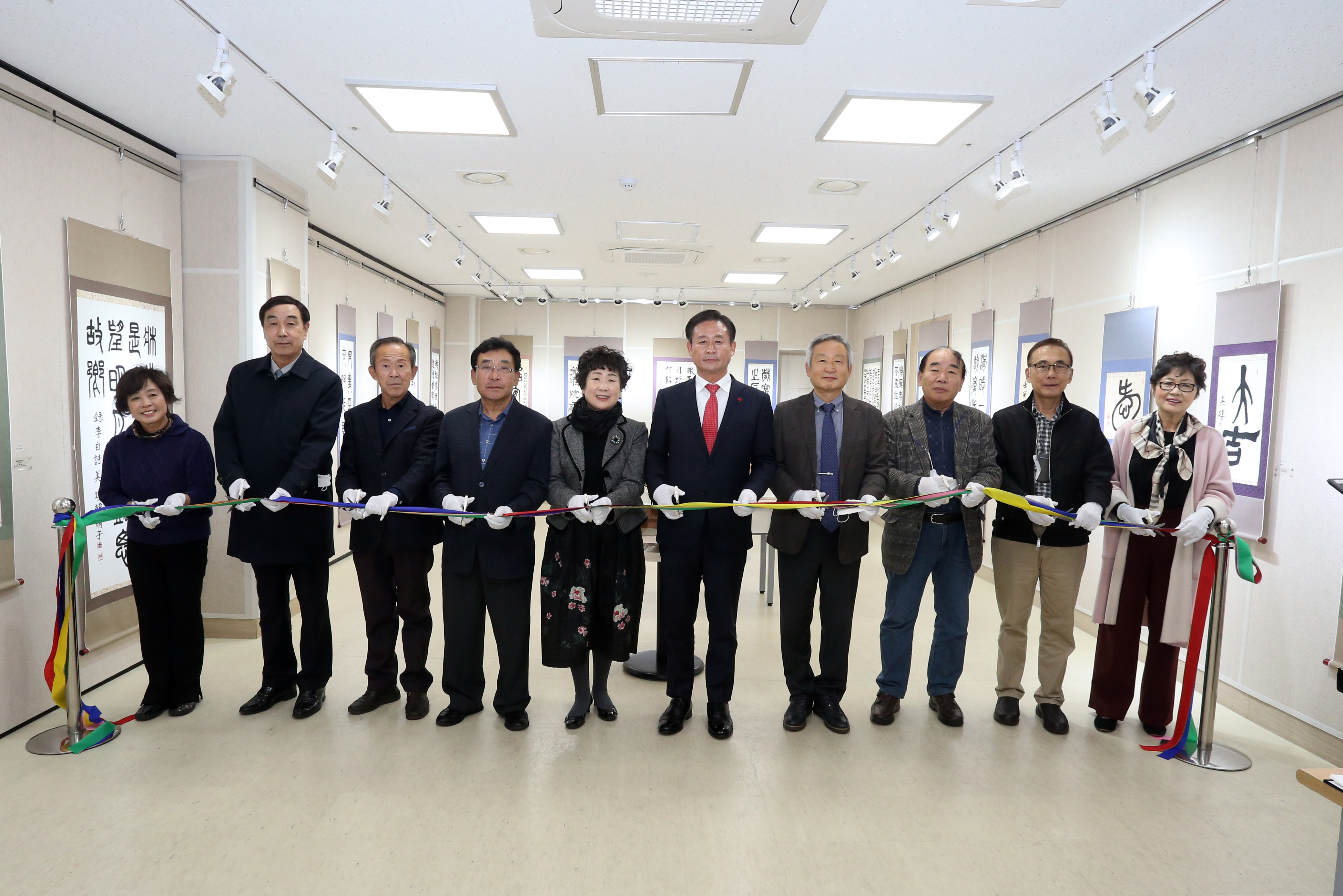 [강원사회복지신문 김도연 기자]=신영재 홍천군수는 지난 10월 17일 홍천문화원에서 열린 제2회 '먹 가을 하늘을 거닐다' 홍묵서학회전 개관식에 참석했다.