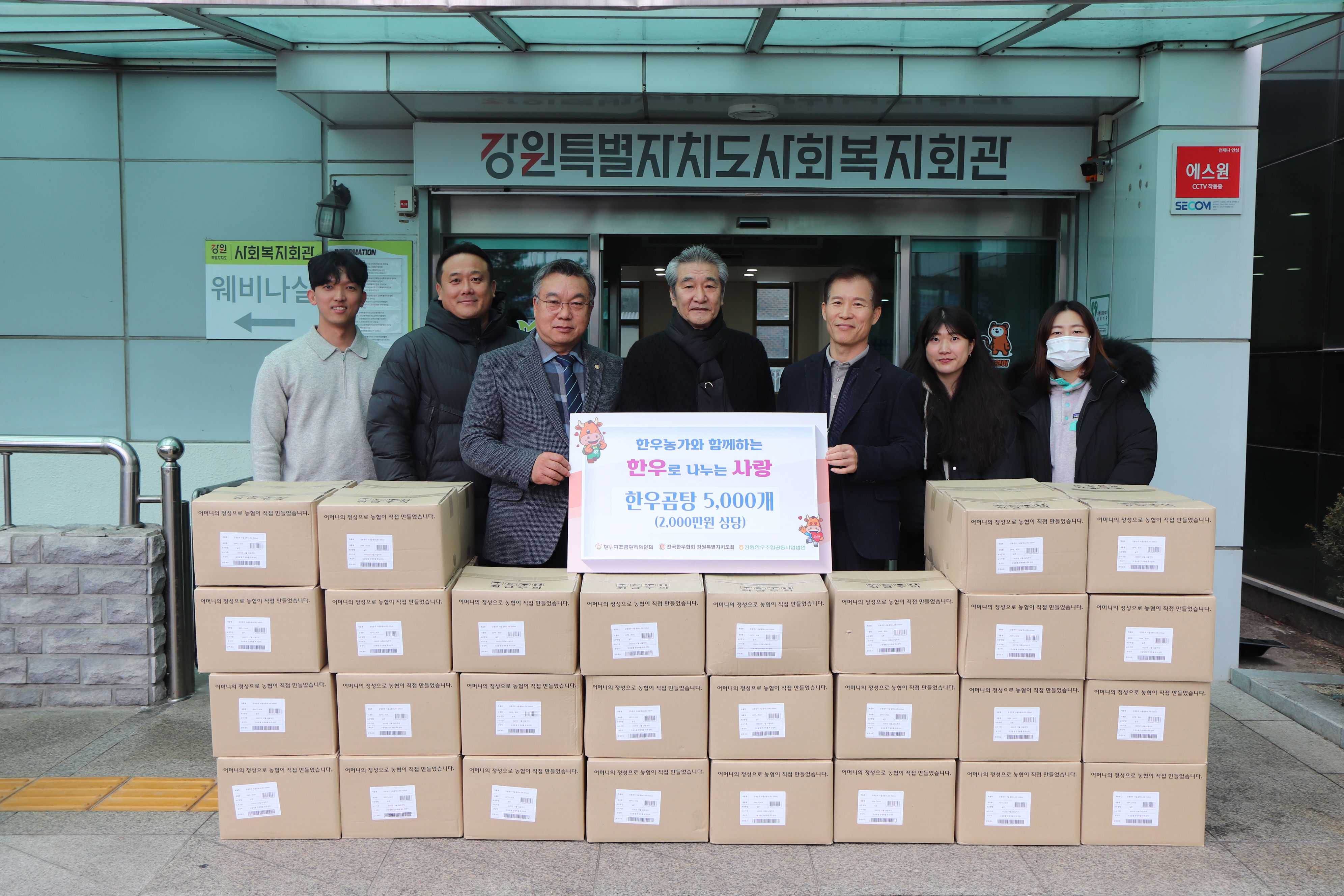 설 명절맞이 한우곰탕 5,000봉(20,000천원 상당) 지원 강원특별자치도사회공헌정보센터(센터장 홍기종)는 1월 20일(월) 강원특별자치도사회복지협의회 사무처에서 전국한우협회 강원특별자치도지회(지회장 박영철)와 함께 ‘2025년 설 명절맞이 한우곰탕 전달식’을 개최하였다. 전달식을 통해 기탁된 한우곰탕 5,000봉(20,0...