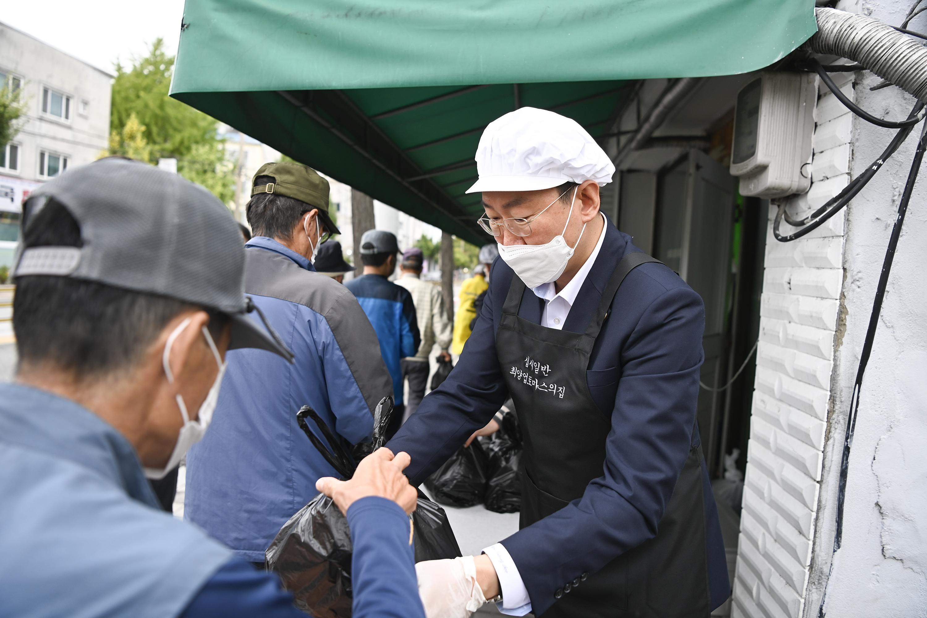 [강원사회복지신문 서은진 기자]=10월 7일 오전 11시 20분, 십시일반 원강수 원주시장은 취임 100일을 맞아 지난 10월 7일 오전 11시 20분, 원주시 경로무료급식소 십시일반에서 급식 봉사를 했다. 이날 행사는 "새로운 변화, 큰 행복, 더 큰 원주"실현을 기조로 출범한 민선 8기 출범 100일을 축하하고 저소득 계층 등이 소...