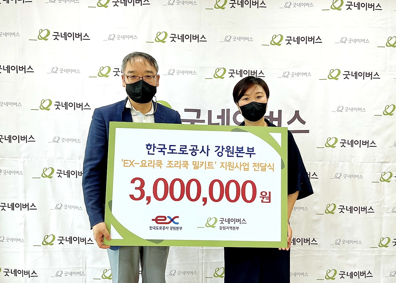 [강원사회복지신문 홍기한 기자]=한국도로공사 강원본부, 강원도 내 아동 20가정 대상으로 밀키트 지원 굿네이버스 강원지역본부(본부장 박미경)는 한국도로공사 강원본부(본부장 신용석)로부터 취약계층아동을 위한 ‘EX-요리쿡, 조리쿡, 밀키트 지원 사업’후원금 3백만 원을 전달받았다고 지난 7월 4일(월), 밝혔다. 한국...