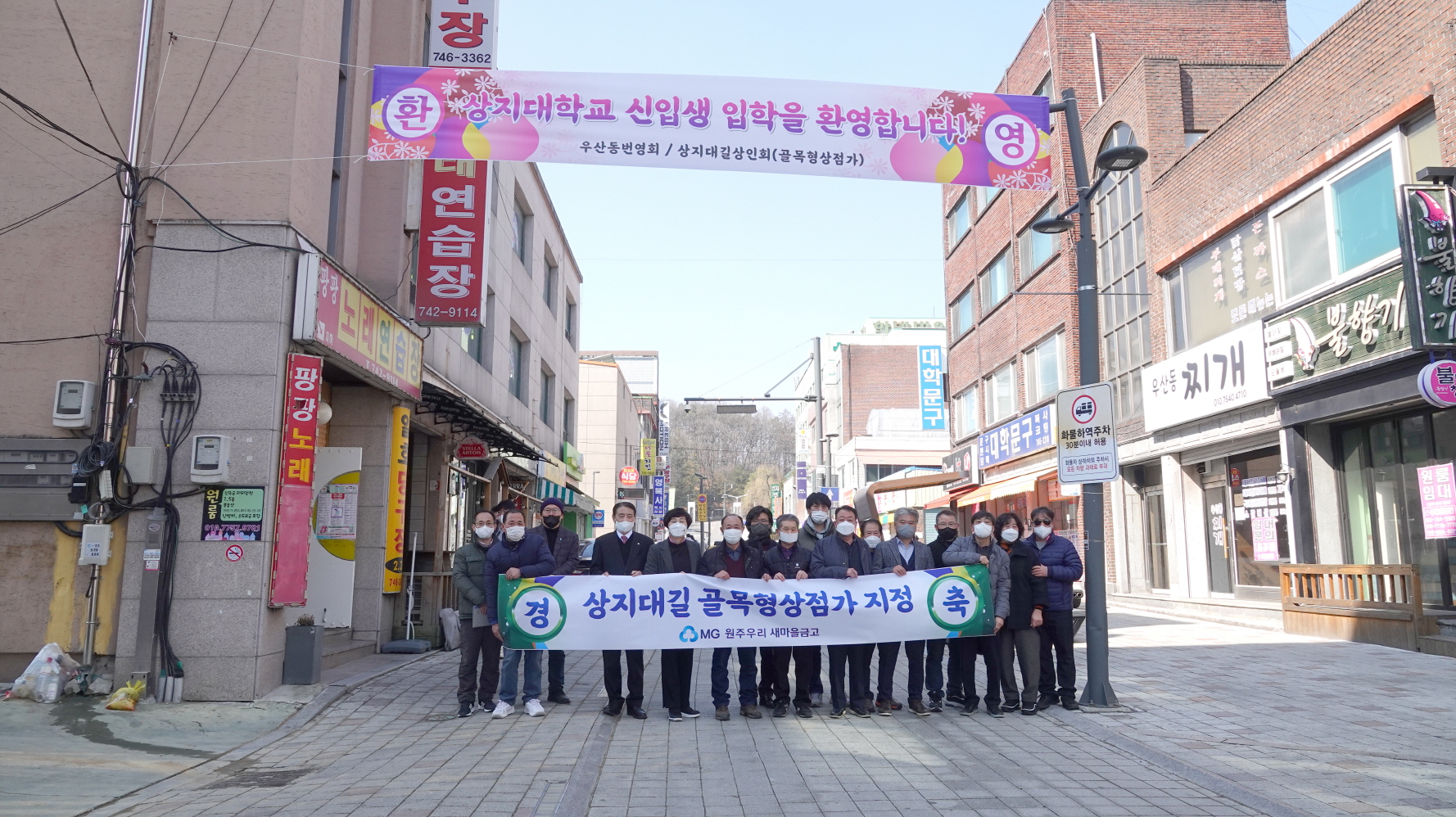 [강원사회복지신문 서은진 기자]=지난해 12월 원주시 제1호 골목형 상점가로 지정된 우산동 상지대길 3월 3일 기념행사 및 온누리상품권 사용 홍보 활동 전개 지난 3월 3일 오전 11시 30분 원주시 우산동 상지대길 문화의 거리에서 원주시 제1호 골목형 상점가 지정 기념행사가 개최됐다. 우산동새마을지도자협의회(회장 김영...