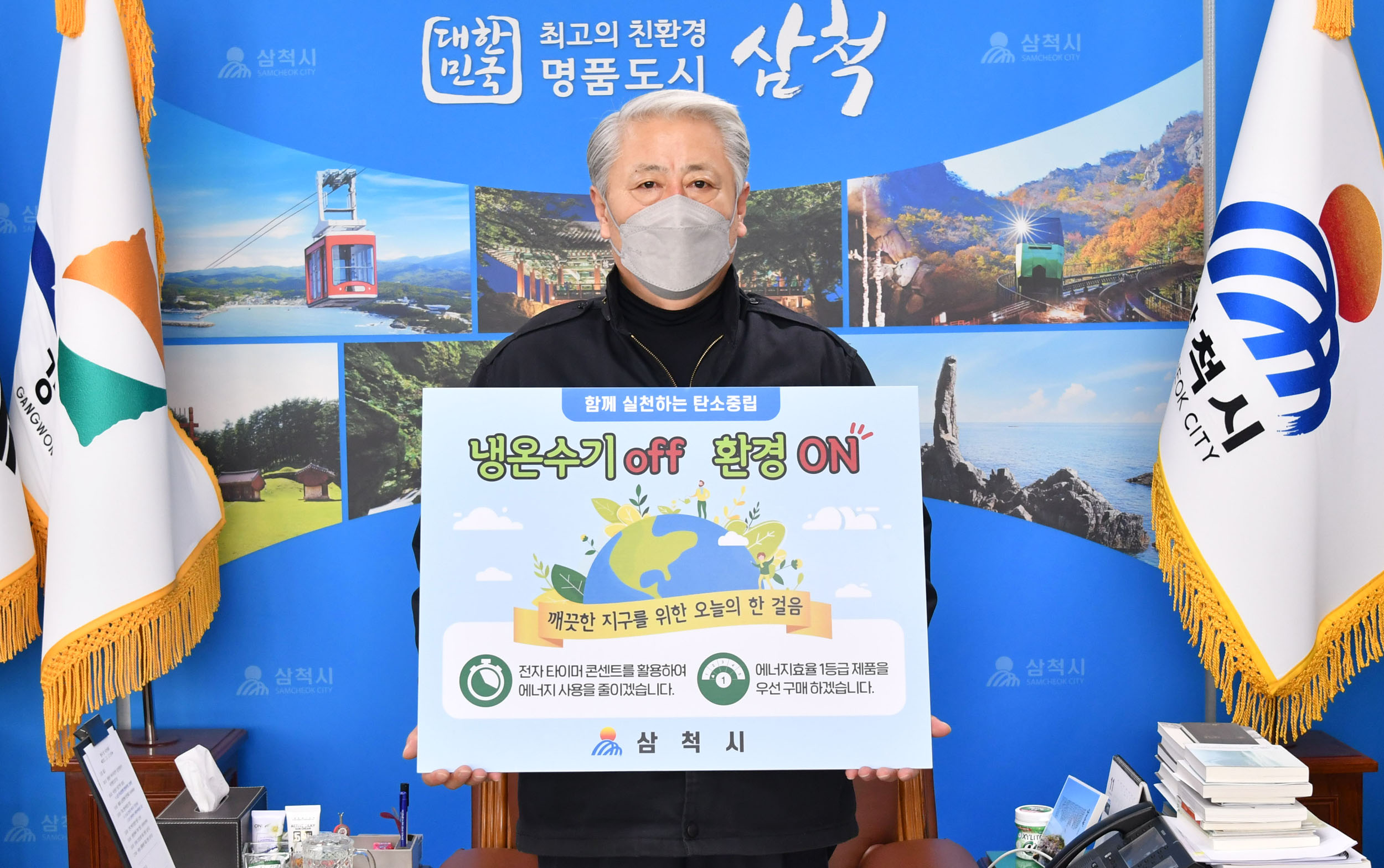 [강원사회복지신문 유경수 기자]=김양호 삼척시장은 경기도 안승남 구리시장의 지명을 받아 지난 11월 17일 생활 속에서 에너지를 절약해 탄소중립을 실현하는 '냉온수기 OFF 환경 ON'이라는 슬로건을 내세운 '생활 속 에너지 절약 실천 캠페인'에 동참했다. '생활 속 에너지 절약 실천 캠페인'은 기후위기에 대응해 전 국민...