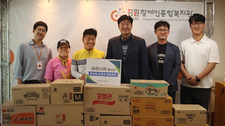 파란나라봉사단(단장 이영철)은 지난 5월 2일 강원특별자치도장애인종합복지관(관장 엄정호)에 50만원 상당의 한마음운동회 물품(과자)를 후원하였다. 파란나라봉사단 이영철 단장은 “화창한 봄날에 즐거운 운동회가 되길 바라며 물품을 후원합니다. 앞으로도 나눔을 이어나가겠습니다.”고 이야기하였다. 강원특별자치도장...
