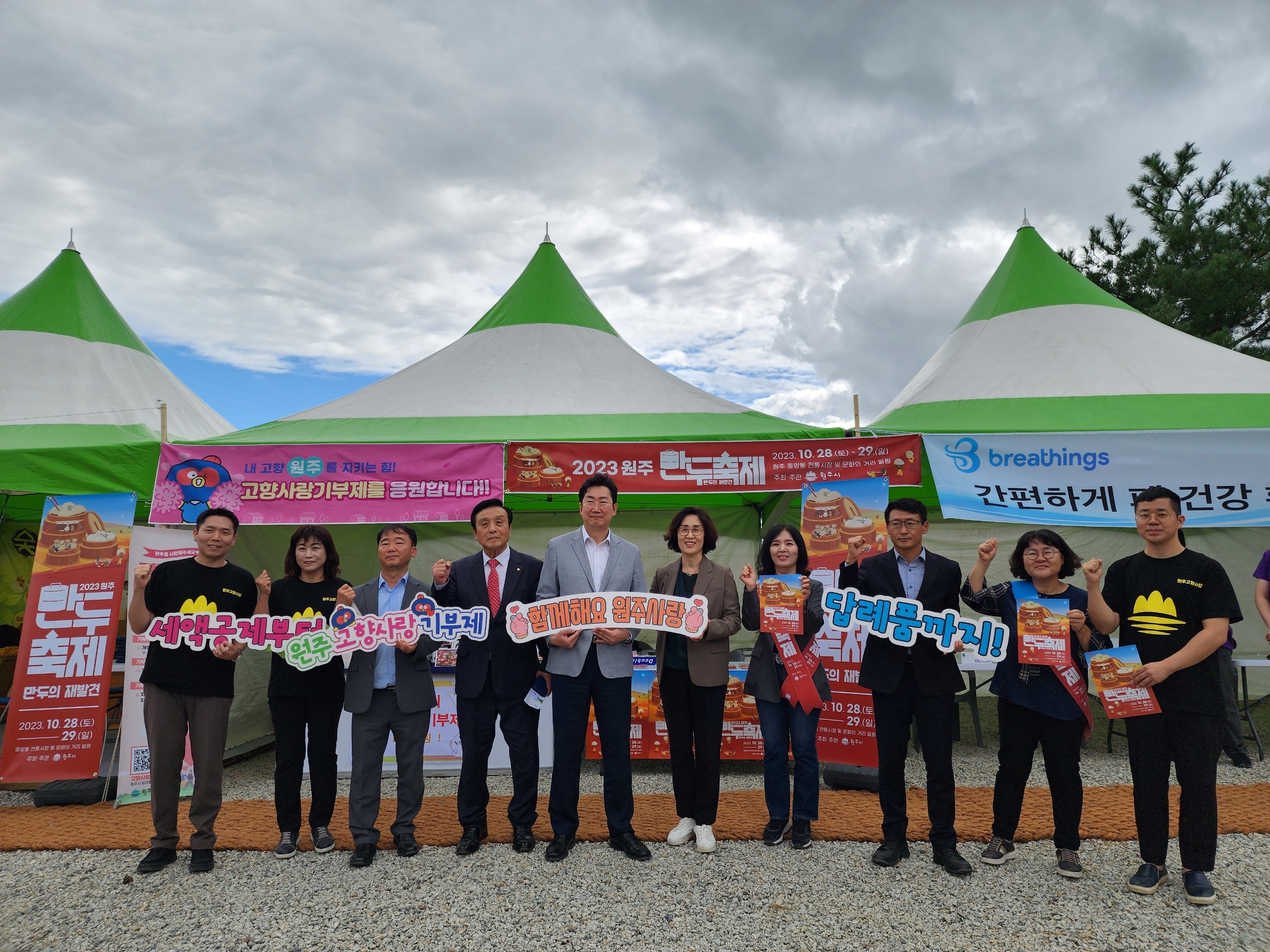 [강원사회복지신문 최재석 기자]=원주시는 지난 9월 25일 '2023 강원세계산림엑스포' 행사장에서 원주시 고향사랑기부제 홍보에 나섰다. 고성 세계잼버리수련장에서 개최된 이번 행사는 인류·산림의 공존 방안을 모색하고 숲의 가치를 일깨우기 위한 국제 행사로 국내·외 관광객 등 많은 인파가 몰리며 뜨거운 관심을 받고...