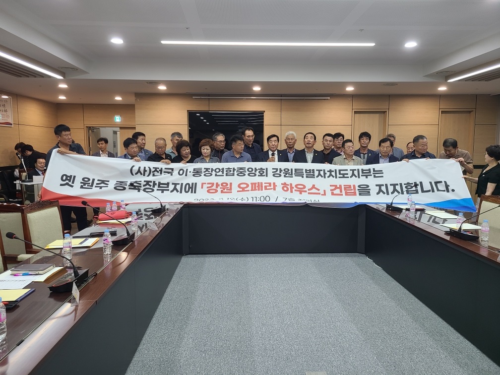 [강원사회복지신문 김도연 기자]=(사)전국 이·통장연합중앙회 강원특별자치도지부(지부장 전영록)는 원주시가 강원특별자치도에 전했던 '강원 오페라 하우스' 건립 제안을 적극 지지한다고 표명하였다. 원강수 원주시장은 지난 6월 브리핑을 통해 옛 종축장 부지에 오페라 하우스 건립을 제안한 바 있다. (사)전국 이·통장...