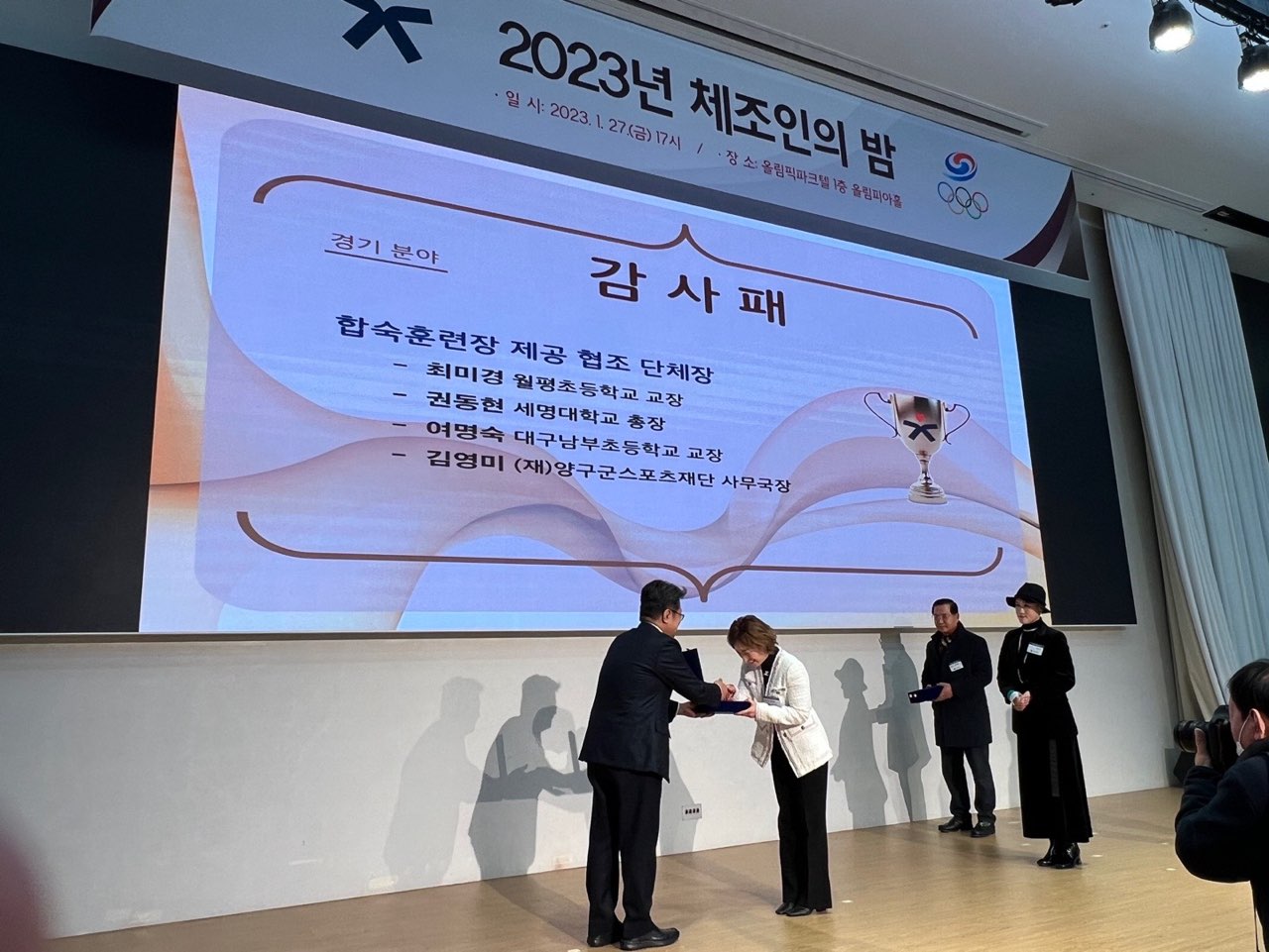 [강원사회복지신문 이정환 기자]=(재)양구군스포츠재단은 지난 1월 27일 서울 올림픽파크텔에서 진행된 '2023 체조인의 밤' 행사에서 2022년도 체조 발전 유공자로 선정되어 대한체조협회장으로부터 감사패를 받았다.