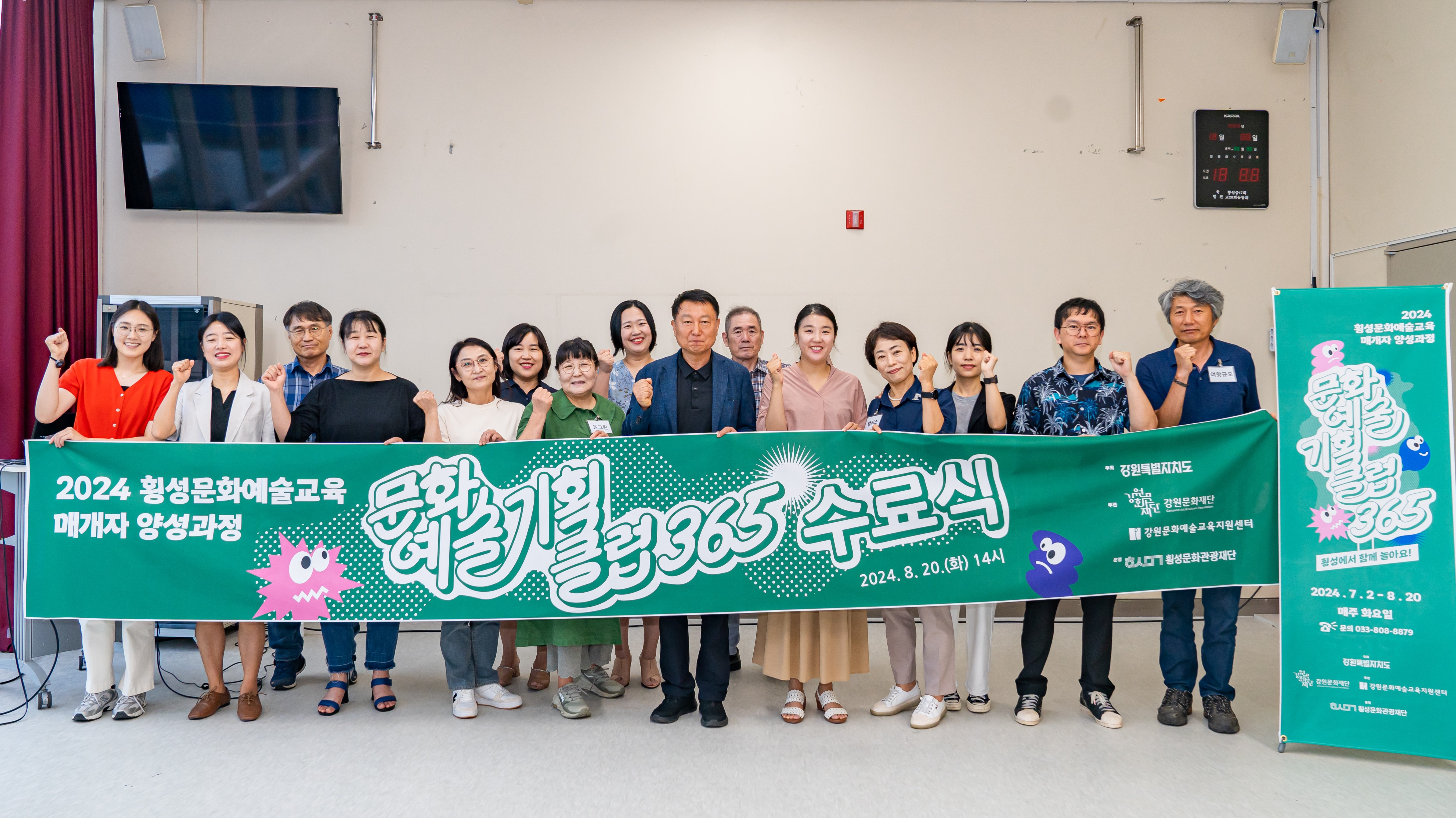 지역 주도 문화예술 생태계 조성을 위한 발판 마련 횡성문화관광재단(대표이사 이재성)은 지난 7월부터 8월까지 2개월간 진행된 ‘문화예술기획클럽 365’1기 프로그램을 성공적으로 마무리하고, 지난 8월 20일 수료식을 개최하였다고 밝혔다. ‘문화예술교육클럽 365’는 횡성에서 문화예술교육 프로그램을 기획하고 운영할...