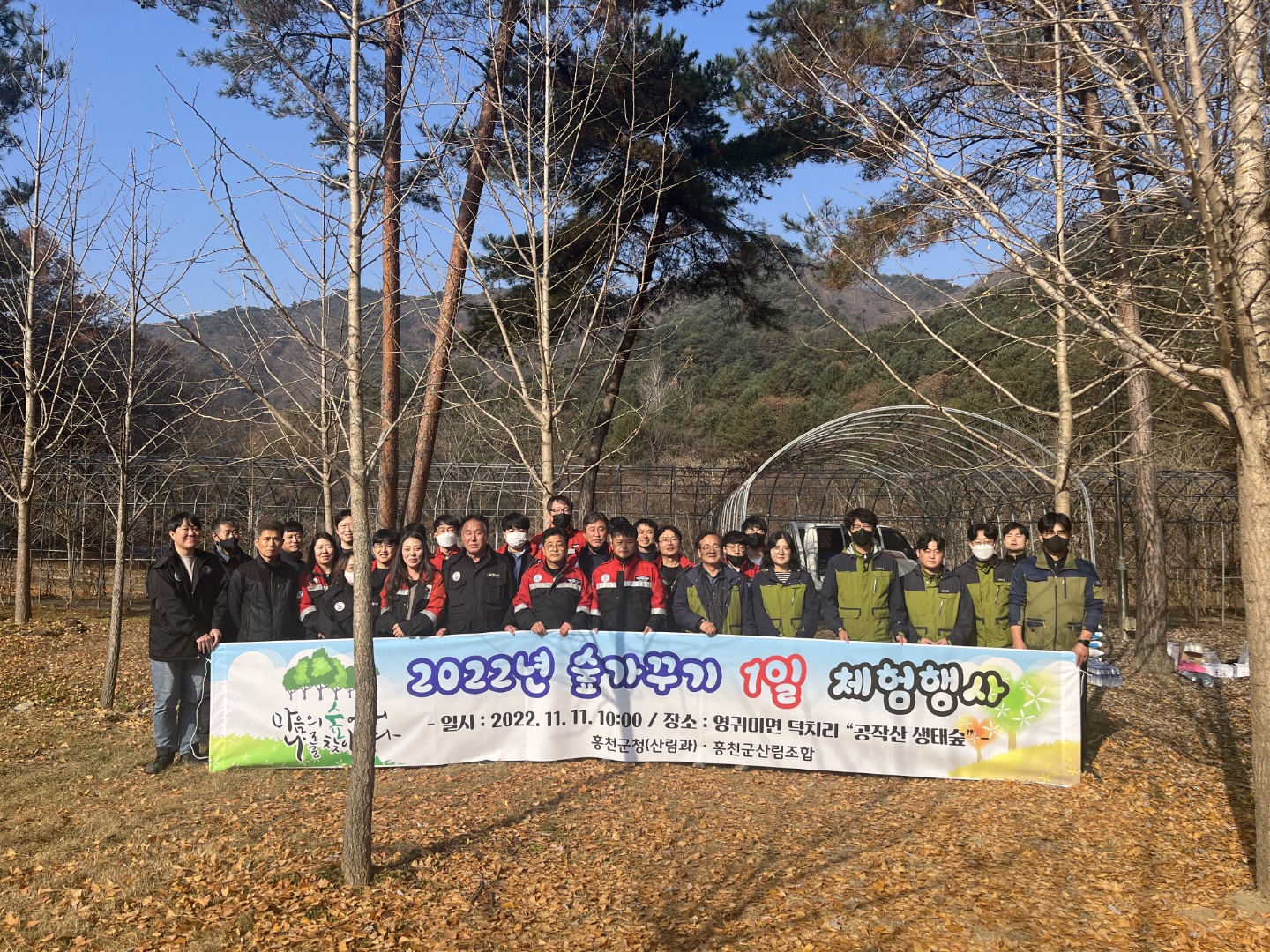 [강원사회복지신문 홍기한 기자]=홍천군과 홍천군산림조합은 지난 11월 11일 영귀미면 공작산생태숲에서'‘2022년 숲가꾸기 1일 체험행사'를 진행했다. 이날 행사에는 홍천군청 산림과 40여명, 홍천군산림조합 10여명이 참석했다.
