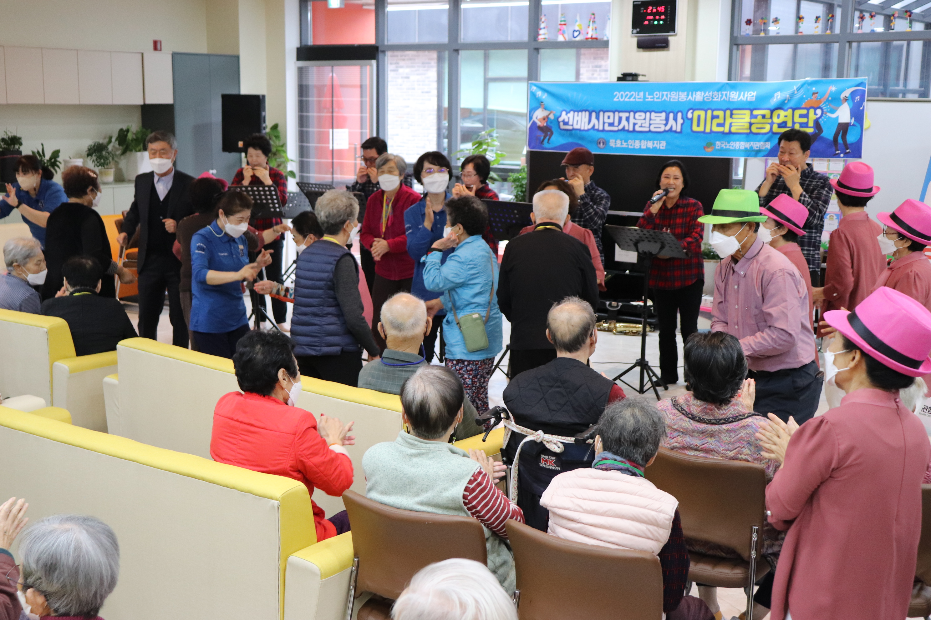 [강원사회복지신문 김종한 기자]=동해 묵호노인종합복지관(관장 염규성)에서 운영하고 있는 '묵호노인종합복지관 미라클공연단'은 지난 10월 28일(금) 14시 동해시 발한동에 소재하고 있는 치매 전담요양 기관인 동해이레복지센터(센터장 유은영)에 직접 방문하여 주간보호 어르신 분들을 위해 공연을 실시하였다. 이번 공연...