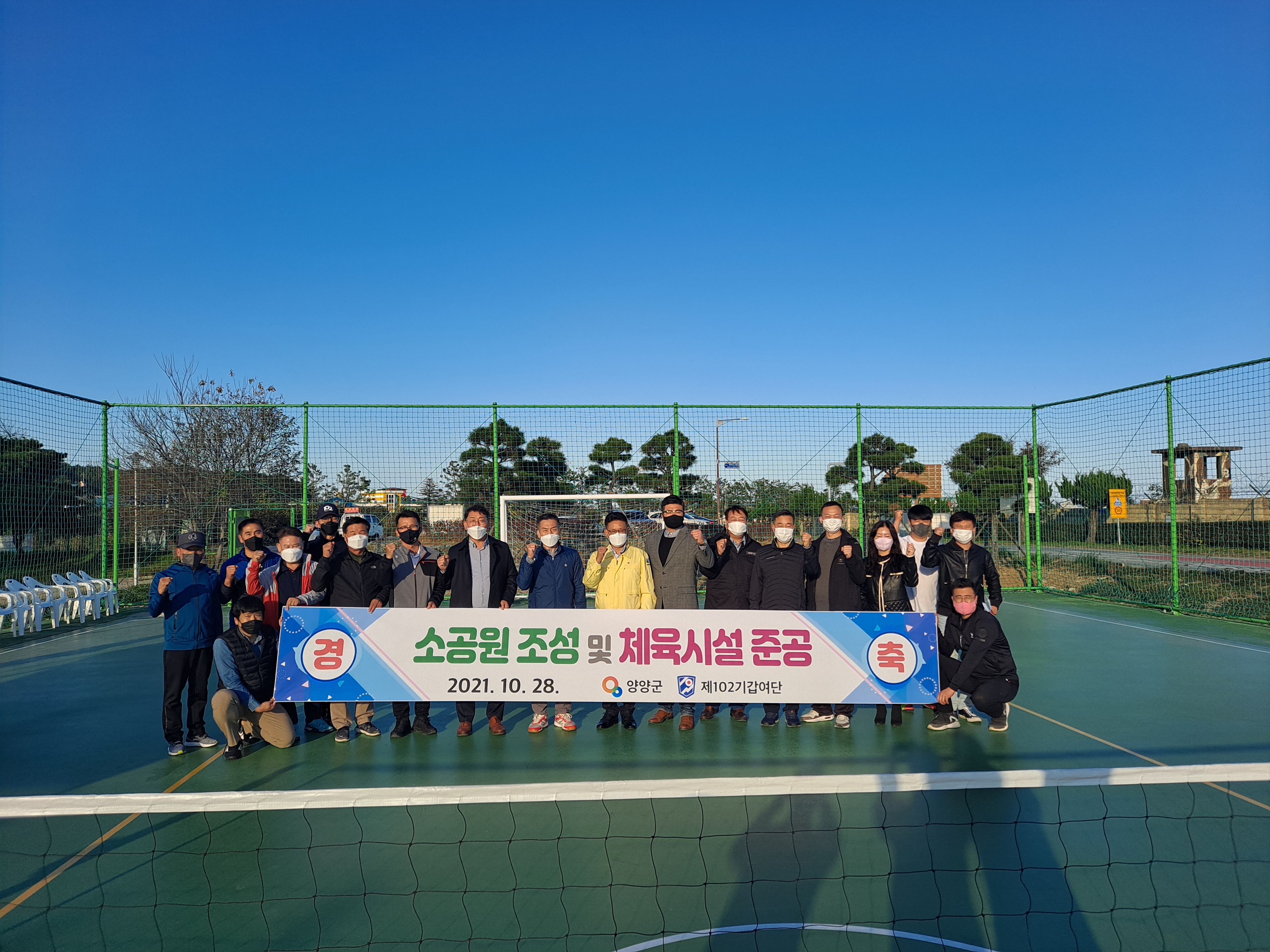 [강원사회복지신문 김종한 기자]=양양군은 지난 10월 28일 오후 4시부터 5시 30분까지 102여단 간부숙소 앞 체육시설 경기장에서 '군부대 주둔지 정비 102여단 주변지 소공원 및 체육시설 설치사업 준공기념 행사'를 개최했다.