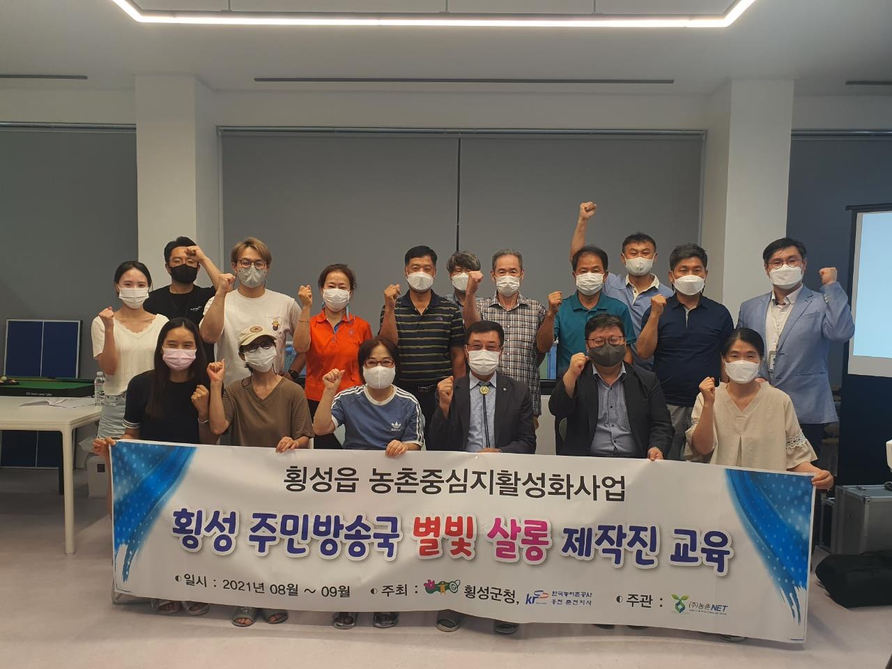 [강원사회복지신문 이정환 기자]=횡성읍농촌중심지활성화사업추진위원회(위원장 권용준)는 지난 8월 9일을 시작으로, 9월 8일까지 주 2회(월, 수), 총 10회에 걸쳐 관내 주민을 대상으로 횡성주민방송국 <별빛살롱> 제작진 교육을 실시한다고 밝혔다. 별빛살롱은 횡성주민방송국의 별칭으로, 횡성읍농촌중심지활성화사...