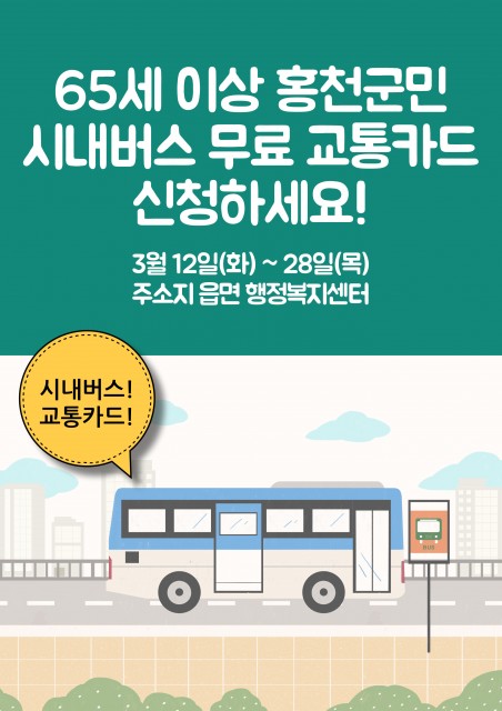 65세 이상 홍천군민 시내버스 무료 교통카드 신청하세요!