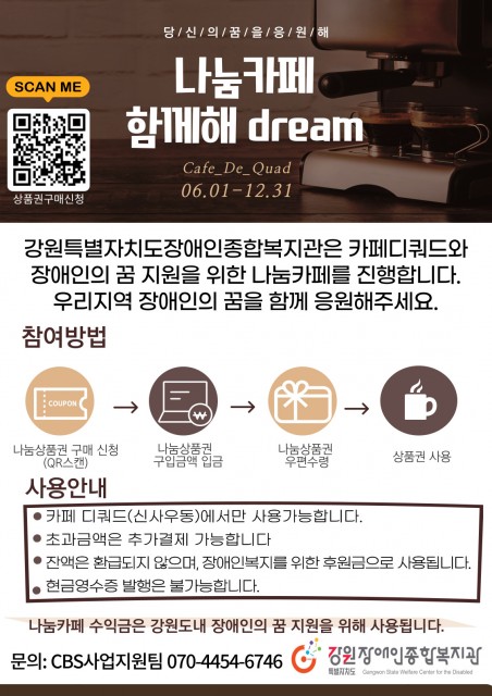광고-강원특별자치도장애인종합복지관, 나눔카페 함께해 dream