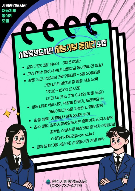 2024년 원주시 성인문해교육 학습관 문해교실 학습자 모집