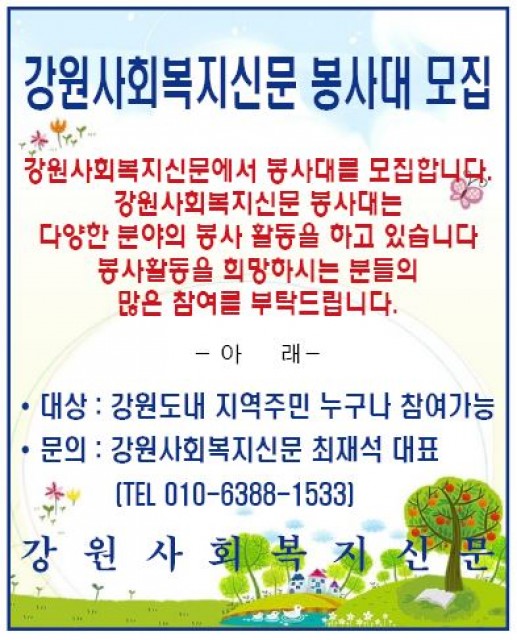 광고-강원사회복지신문 봉사대 모집