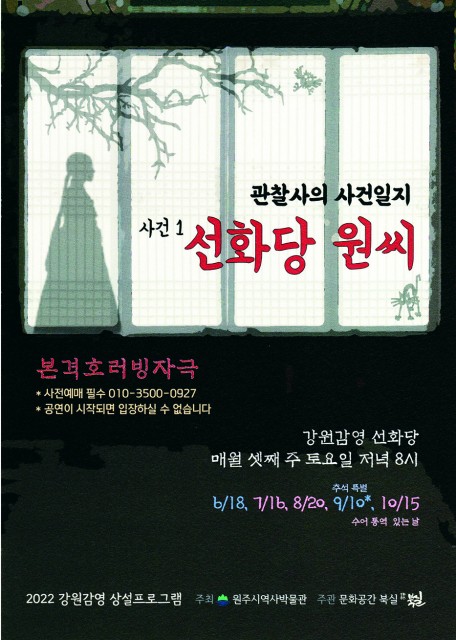 강원감영 상성프로그램 본격호러빙자극 강원감영 선화당 <관찰사의 사건일지-사건1 선화당 원씨>