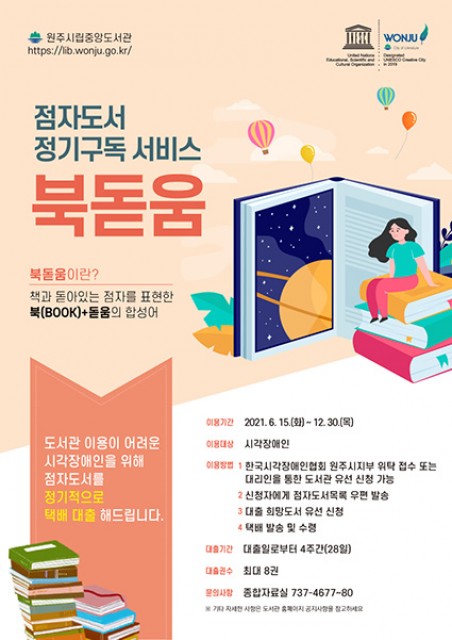 원주시립중앙도서관 북돋움 점자도서 정기구독 서비스 안내